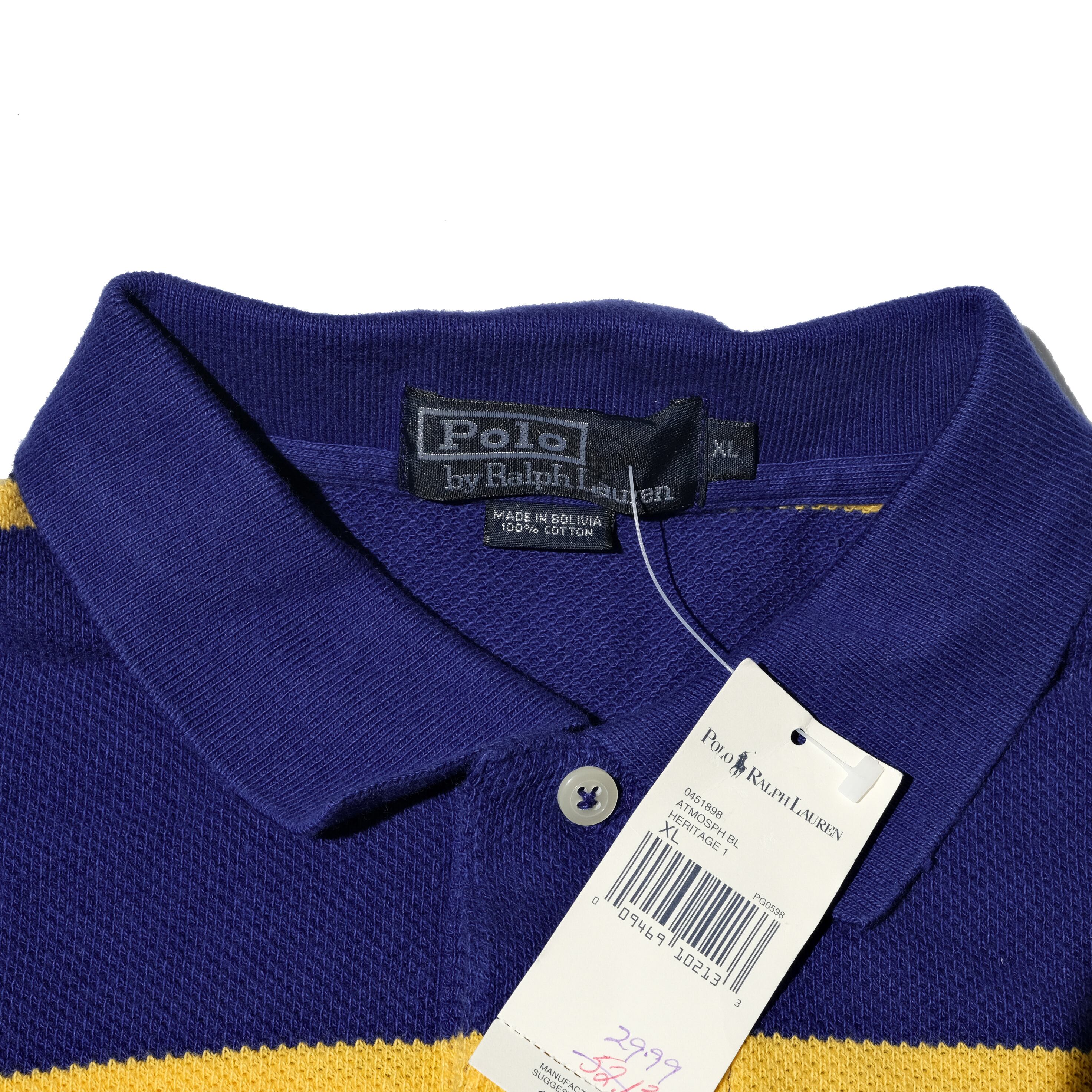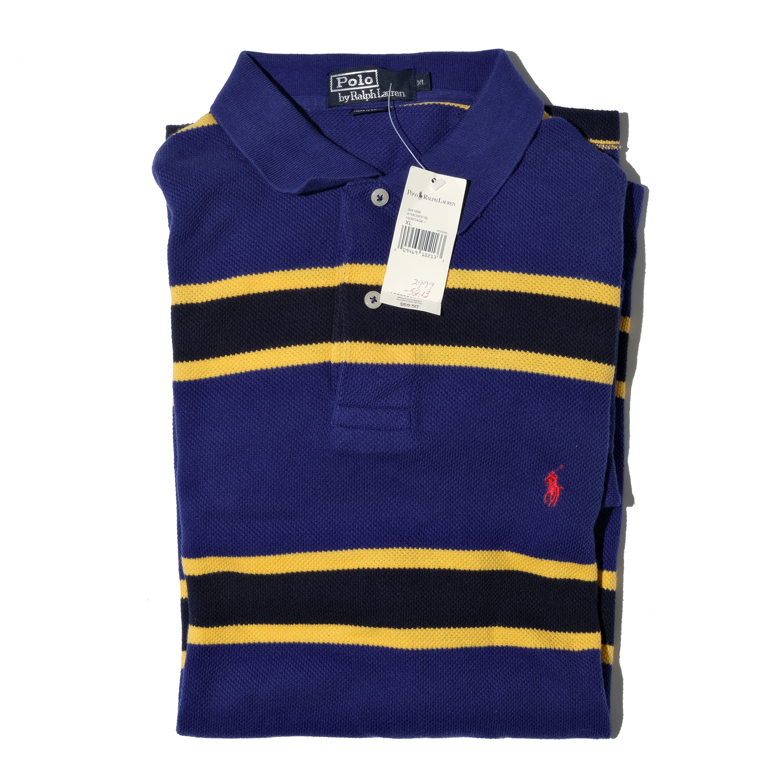 DEAD STOCK 90's Polo by Ralph Lauren striped L/S polo-shirt [XL]