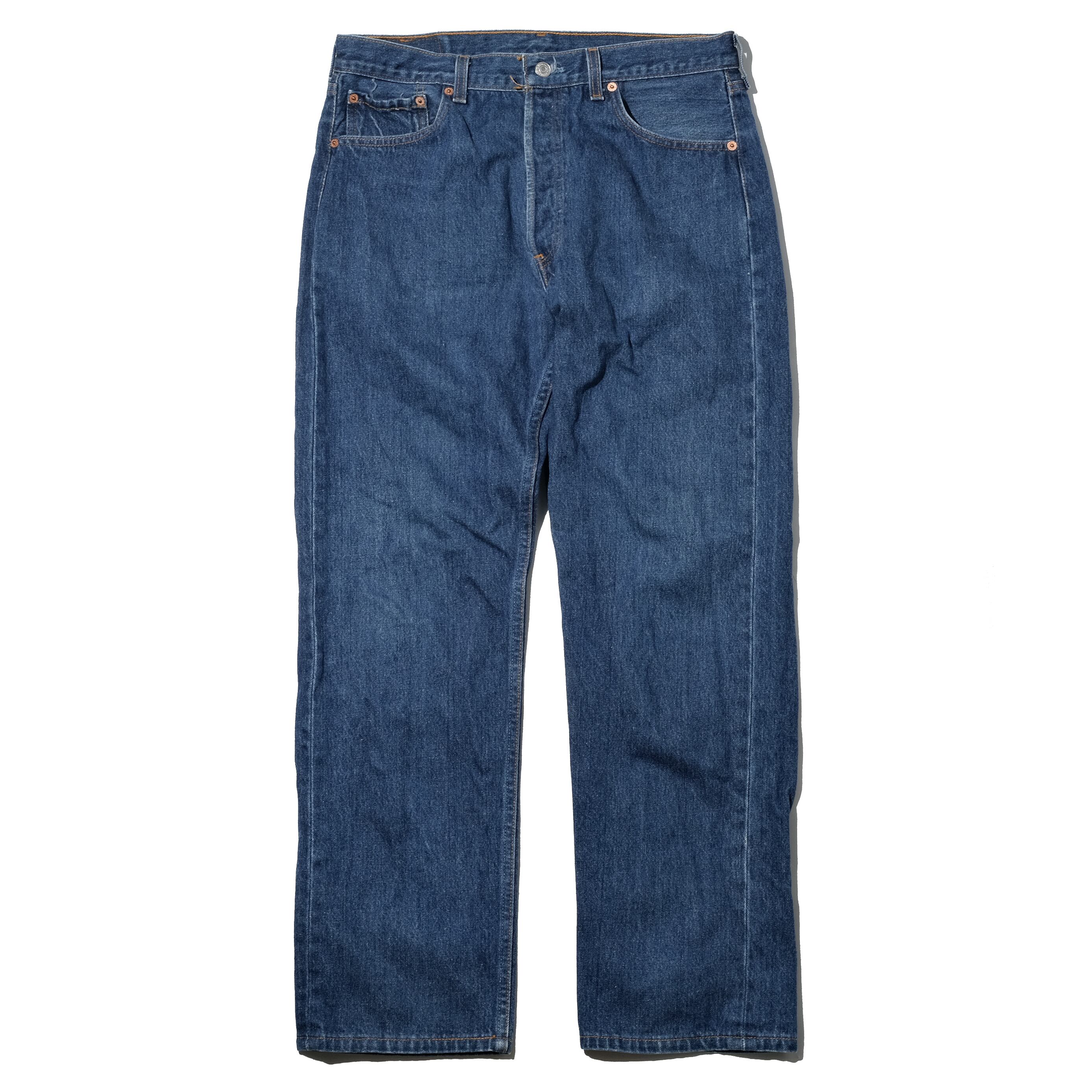 97年、USA製の個体。35x33の表記サイズからシュリンクして33.5x30程度の超ゴールデンサイズになっております。まだまだインディゴの色味も残る、全体的なフェードがなんとも古着らしいカラーのもの。やはりUSA製の年代の501の質感は格別、長く愛用いただける一本なのではないかと思います。