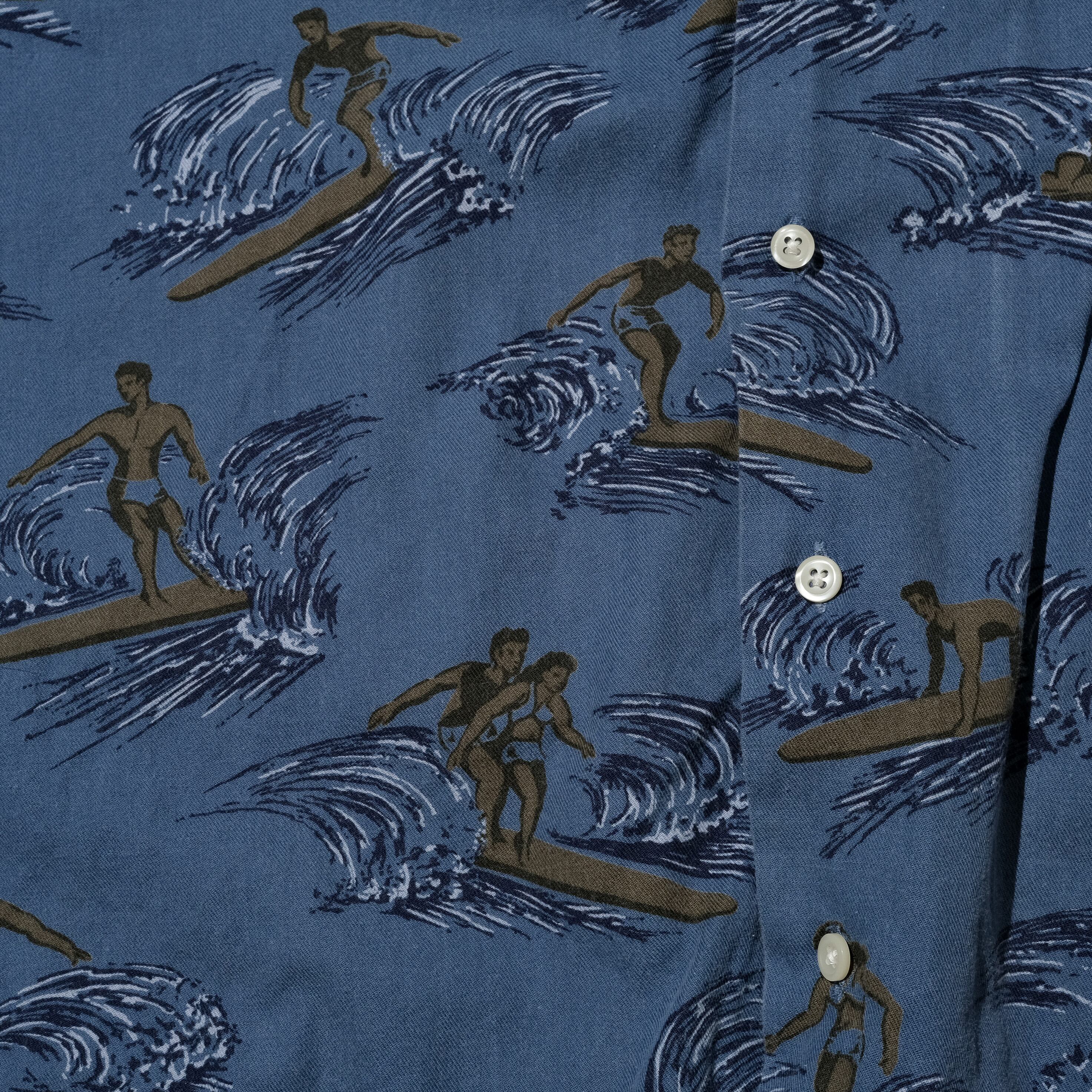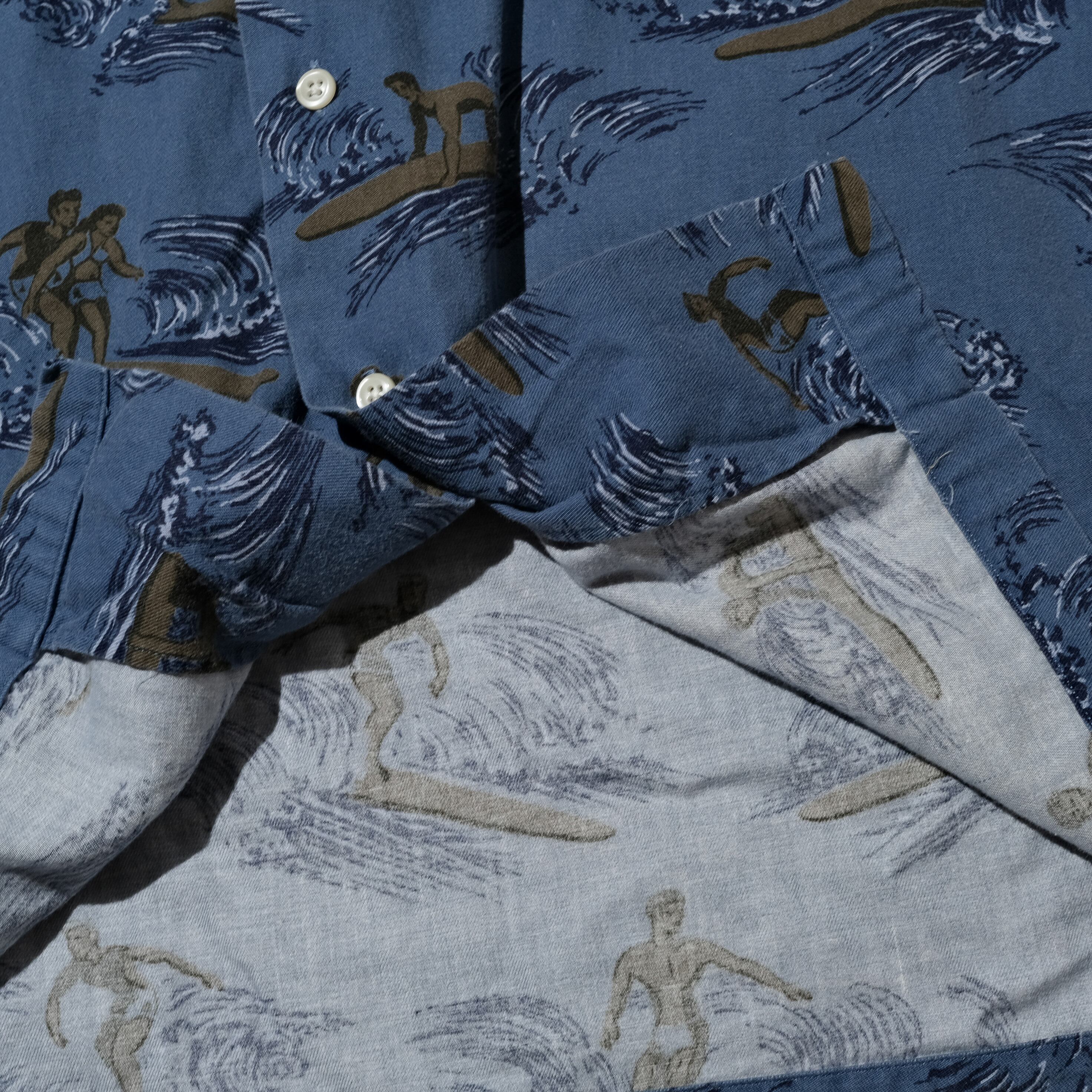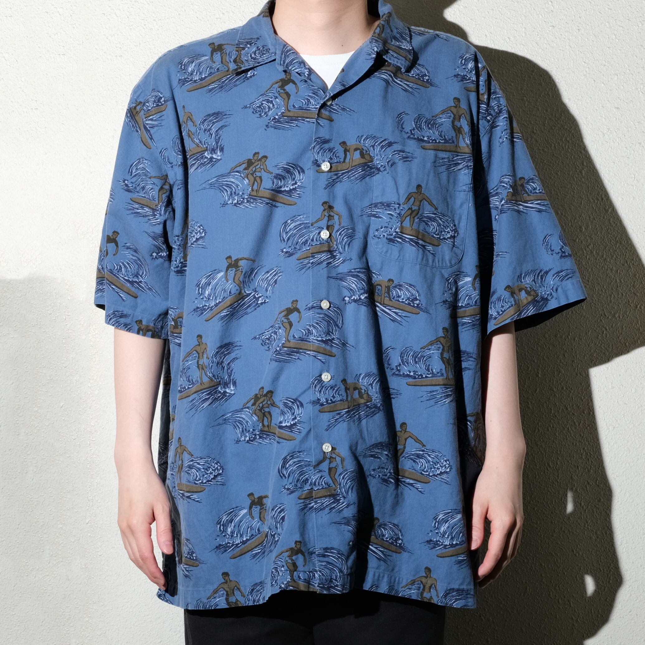 90'sの北マリアナ諸島製のもの。ご家庭でのケアも容易なコットン100%のタイプ。サーフ柄の素晴らしいデザインが目を惹きます。
