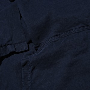 こちらは中でも人気のネイビーのカラーのもの。表記でLサイズと多くの方に馴染むサイズですね。前を開けて着るのもよし、閉じて着るのもよしな万能アイテムです。