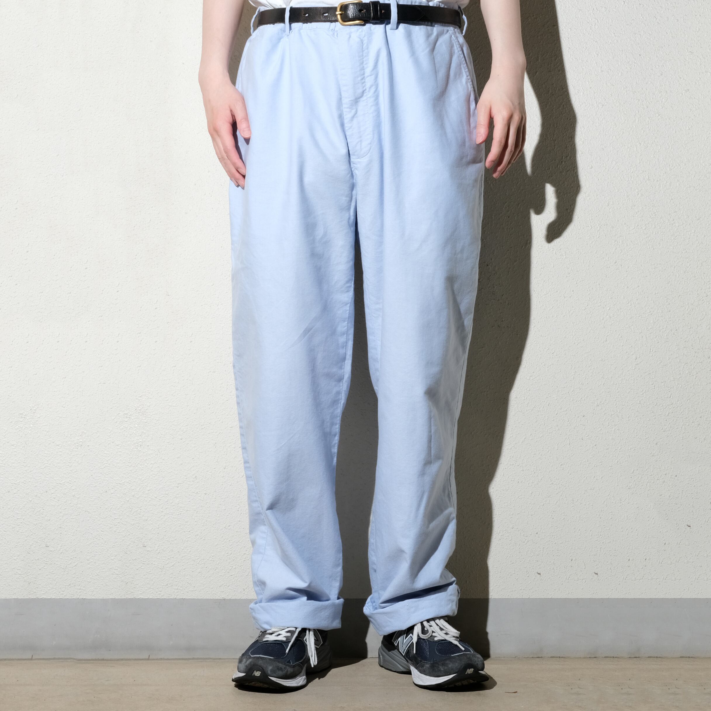 通常のチノクロスとは違ったオックスフォード生地に近いものが使用された一本。尚且つこの淡いブルーのカラーで夏らしさ前回のアイテムです。