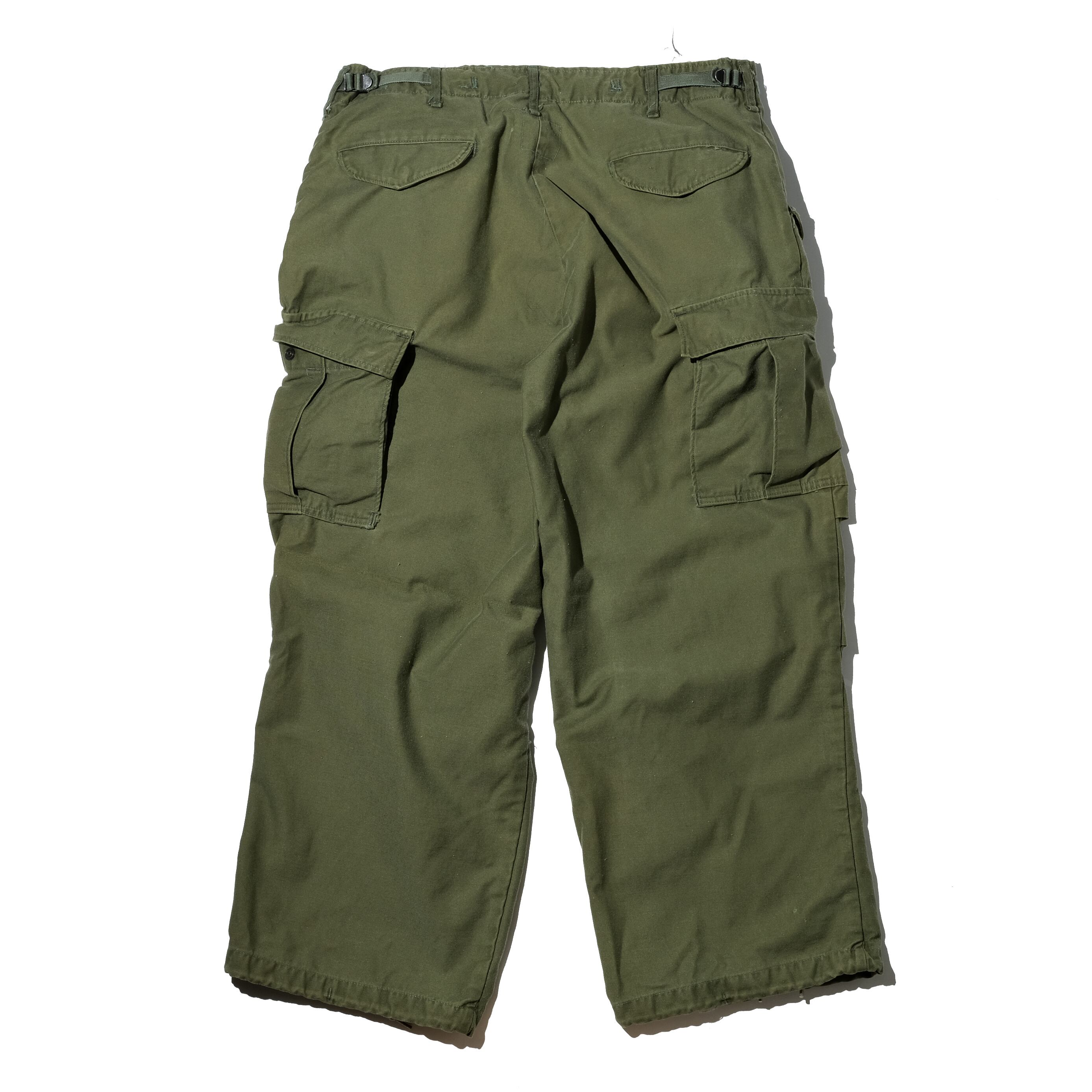 【状態】全体的に着用感、スレ。ヒップに微かなキズ(貫通なし)、裾付近に微かなキズ。左足バックに折り痕。ヴィンテージミリタリー特有の着用感など見られますが、比較的良い状態の個体と言えるかと思われます。
