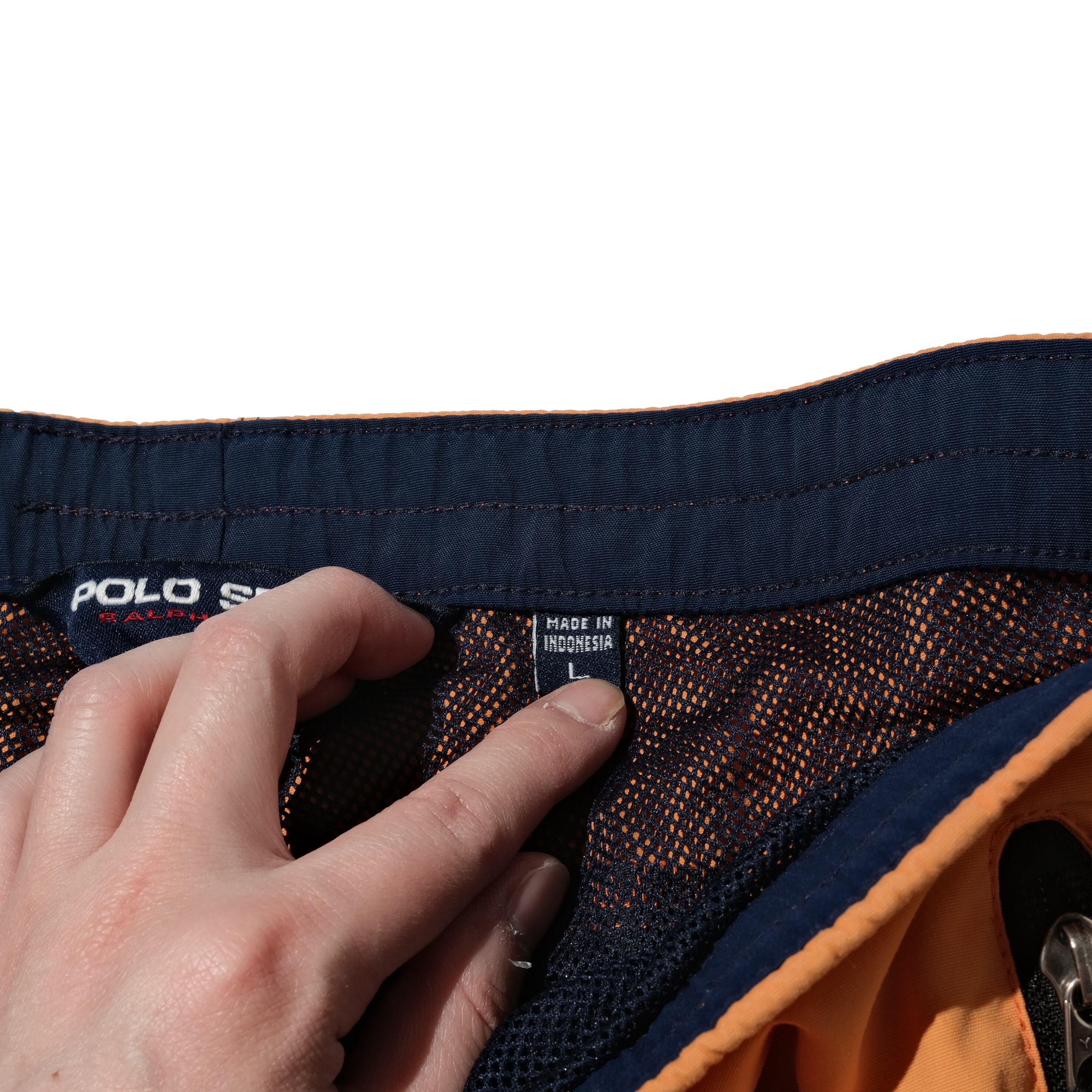 90's~の一枚、同ブランドらしい切り返しにサイドにブランド名の入るデザイン。一見派手ですがスポーティなアイテムですし、古着ゆえの若干のフェードが肌に馴染んでくれる印象です。