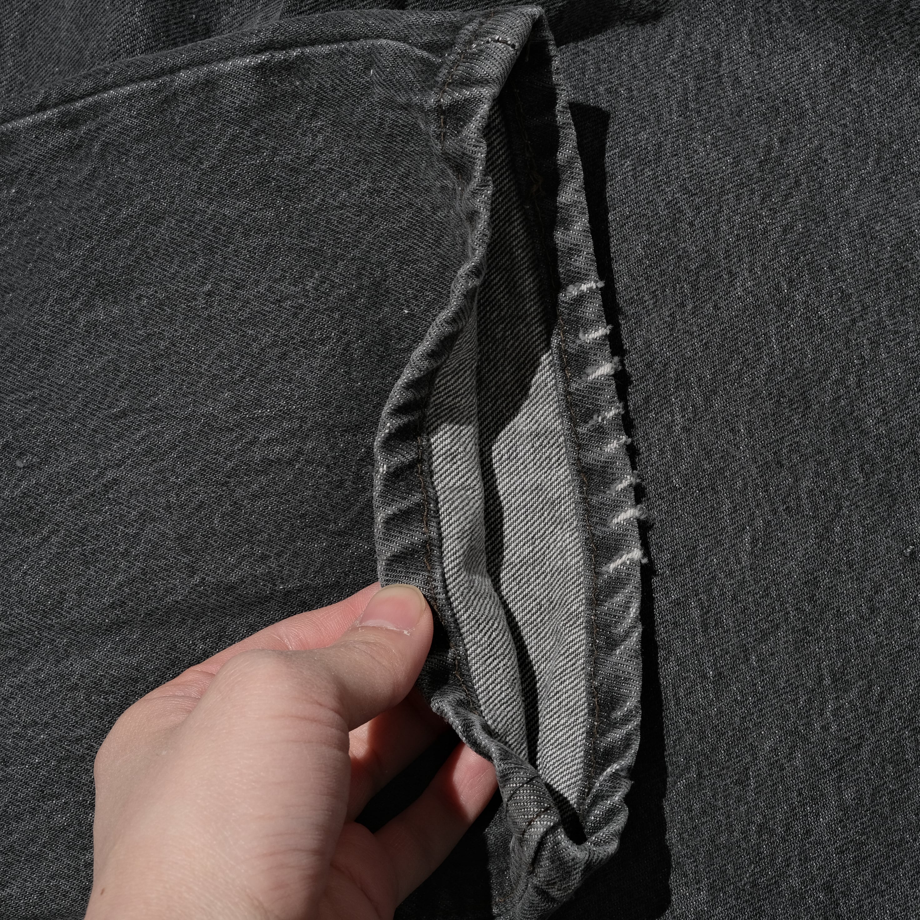 股部に裂けがありましたので当店にてリペアを入れました。やはり先染めブラックの501特有の雰囲気が他のアイテムですと出せないかと思います。