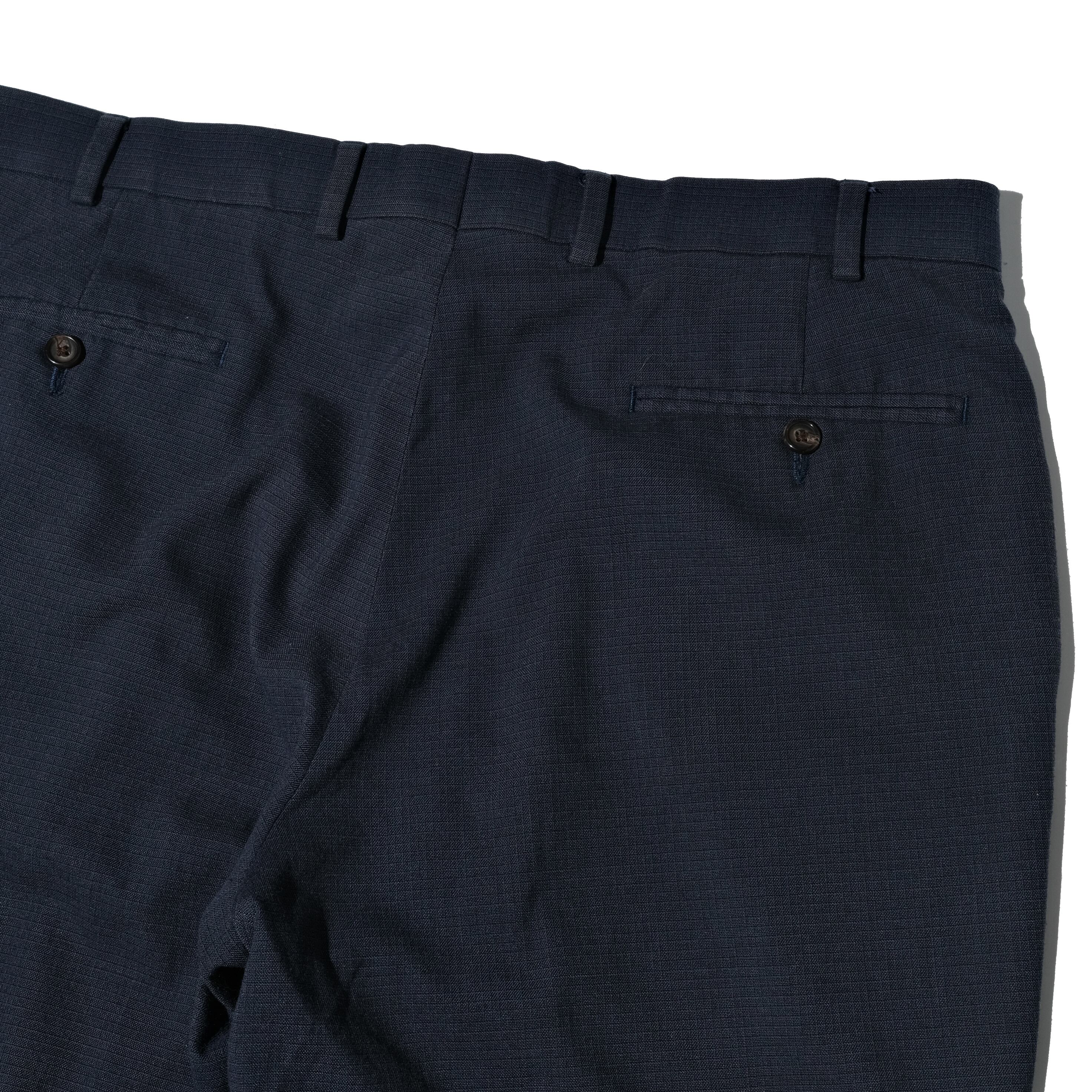 ドレッシーなラインのタグのつく一本、落ち着いた配色、柄が使いやすそうなラルフローレンによるスラックス。