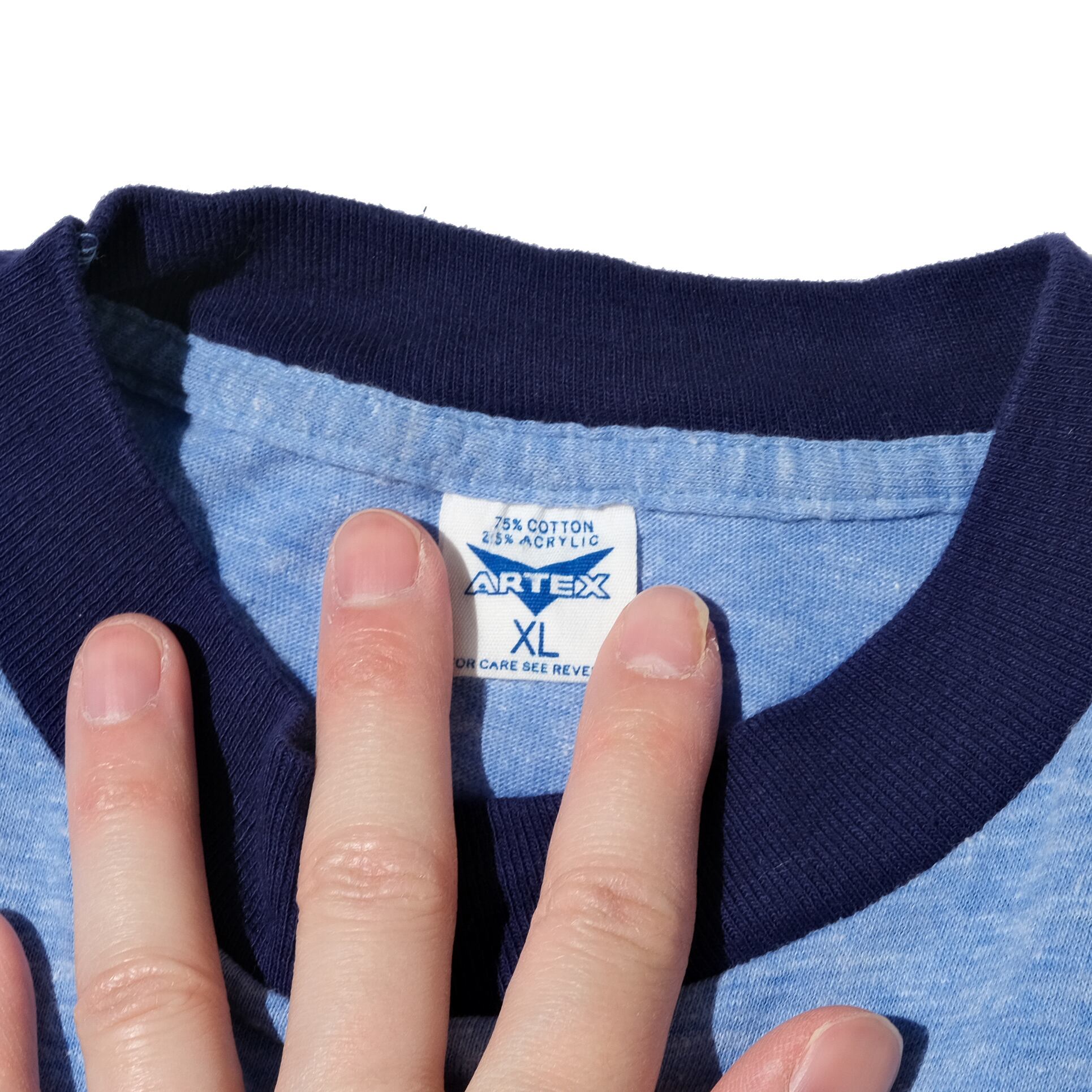 この年代のリンガーですとやはり小さめのものの多い印象ですが、こちらは表記でXL、そして着用感も少ない良いコンディションです。