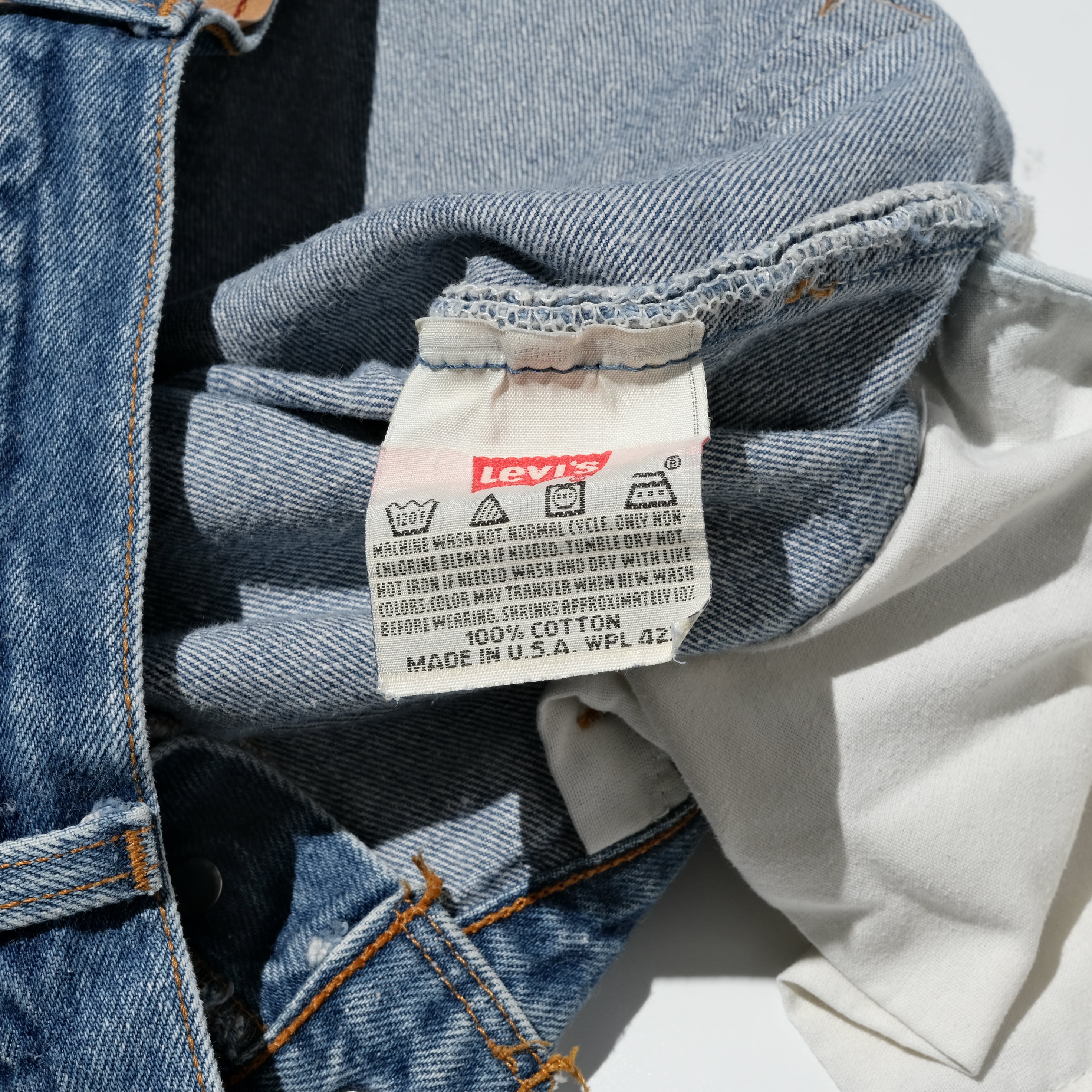 95年のUSA製のもの。うっすらとヒゲの入ったナチュラルな色落ち、使いやすい一本かと思います。38x34表記のサイズから裾上げとシュリンクが入って35x29.5のゴールデンサイズとなっております。