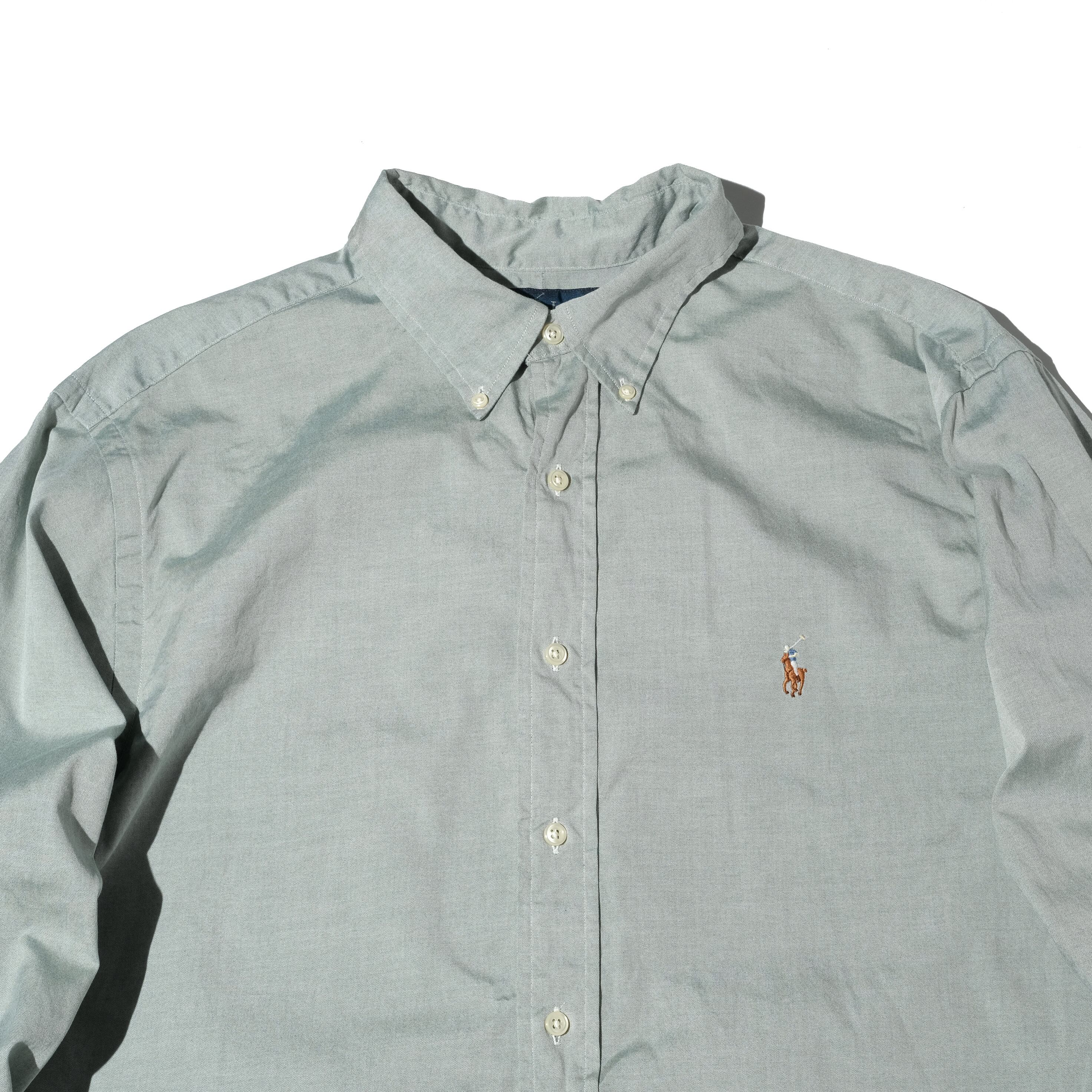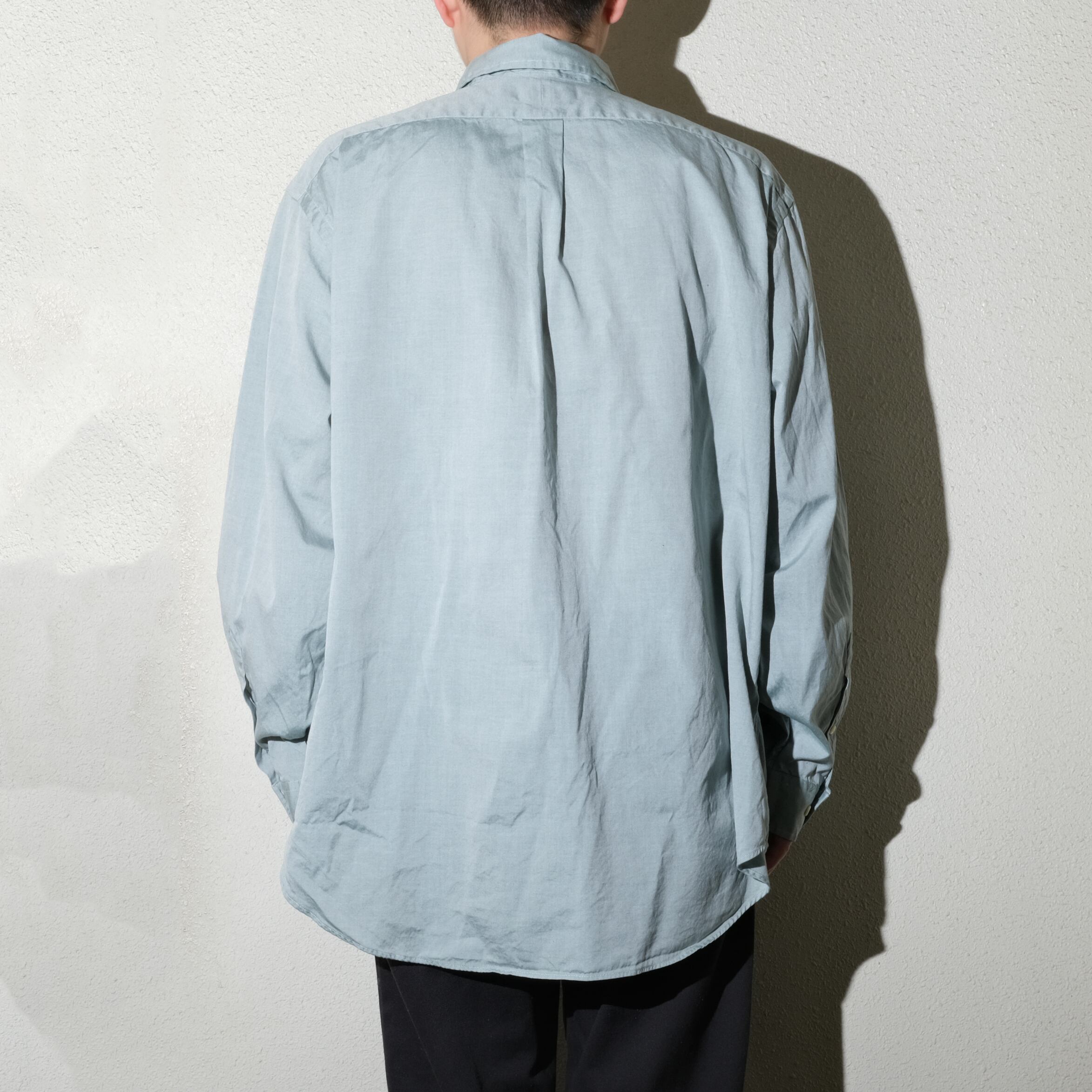 薄いグリーンのカラーの一枚。全体的に問題のないユーズドのコンディション、番手の細かいシャリっとした生地が使用されており、通年で使いやすい素材感のものになります。