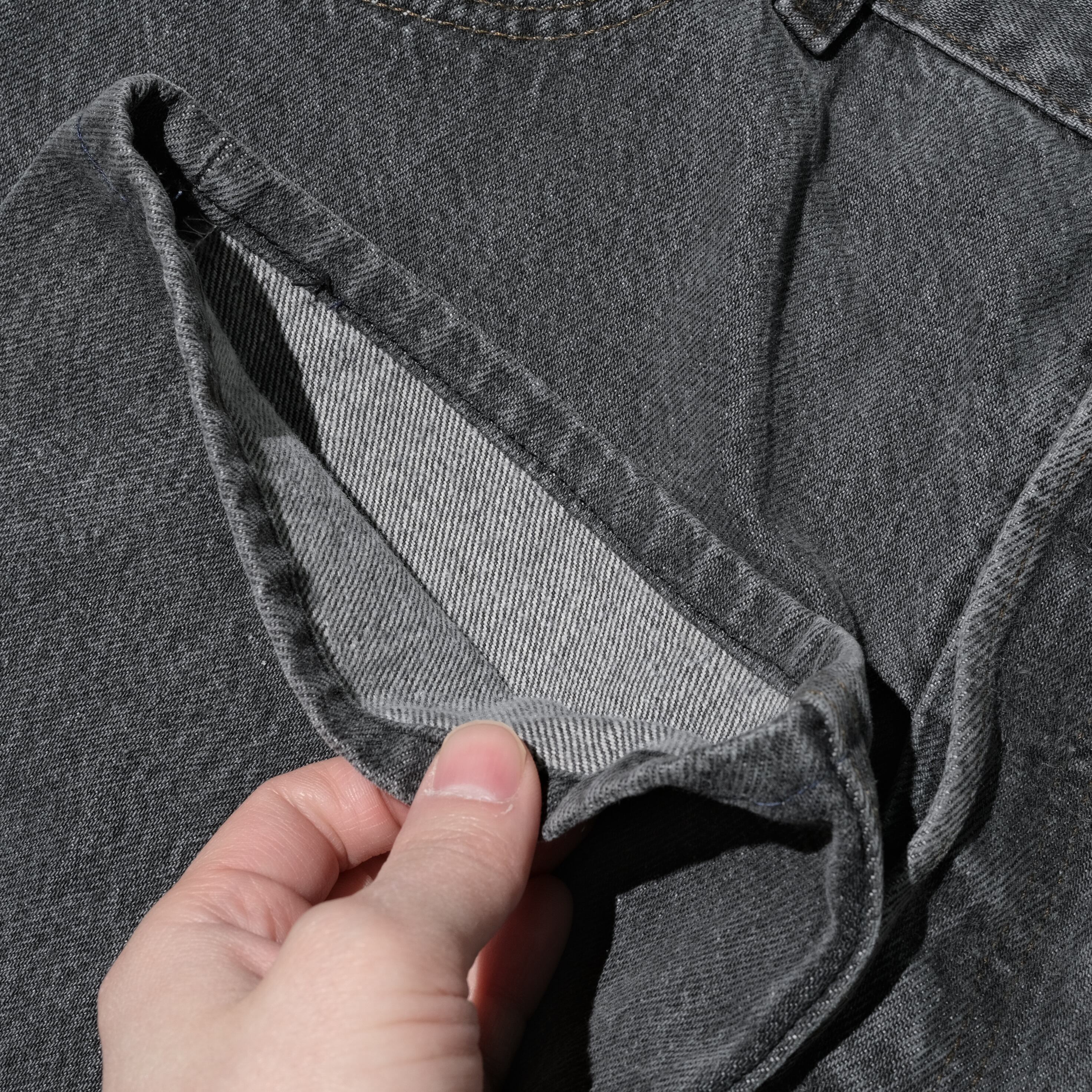 パッチから読み取れる表記サイズはおそらく38x30、シュリンクと裾上げが入って35.5x27と太めで足元はスッキリと着用可能なサイズ感です。