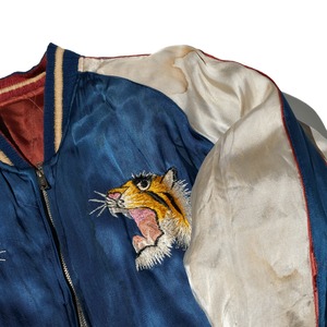 両面ともに素晴らしい迫力のある刺繍ですがサイズとブルーの面に汚れが目立つため抑えたプライスに設定いたしました。