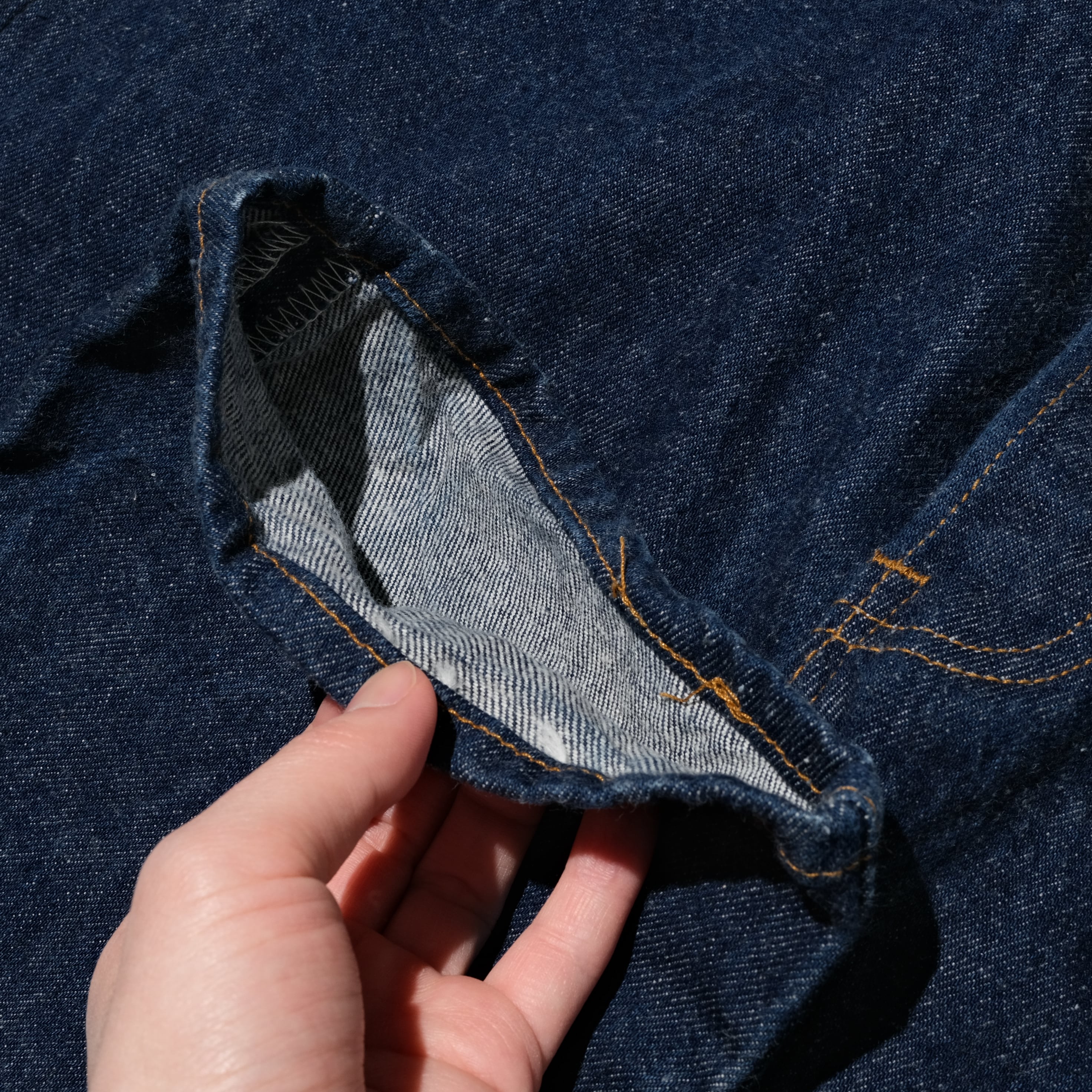 USA製のものとしてはもはやみかけなくなった、80's後期のもの。これ以降のものに比べて青みの強いインディゴのカラーが一目見てオールドらしさを感じます。