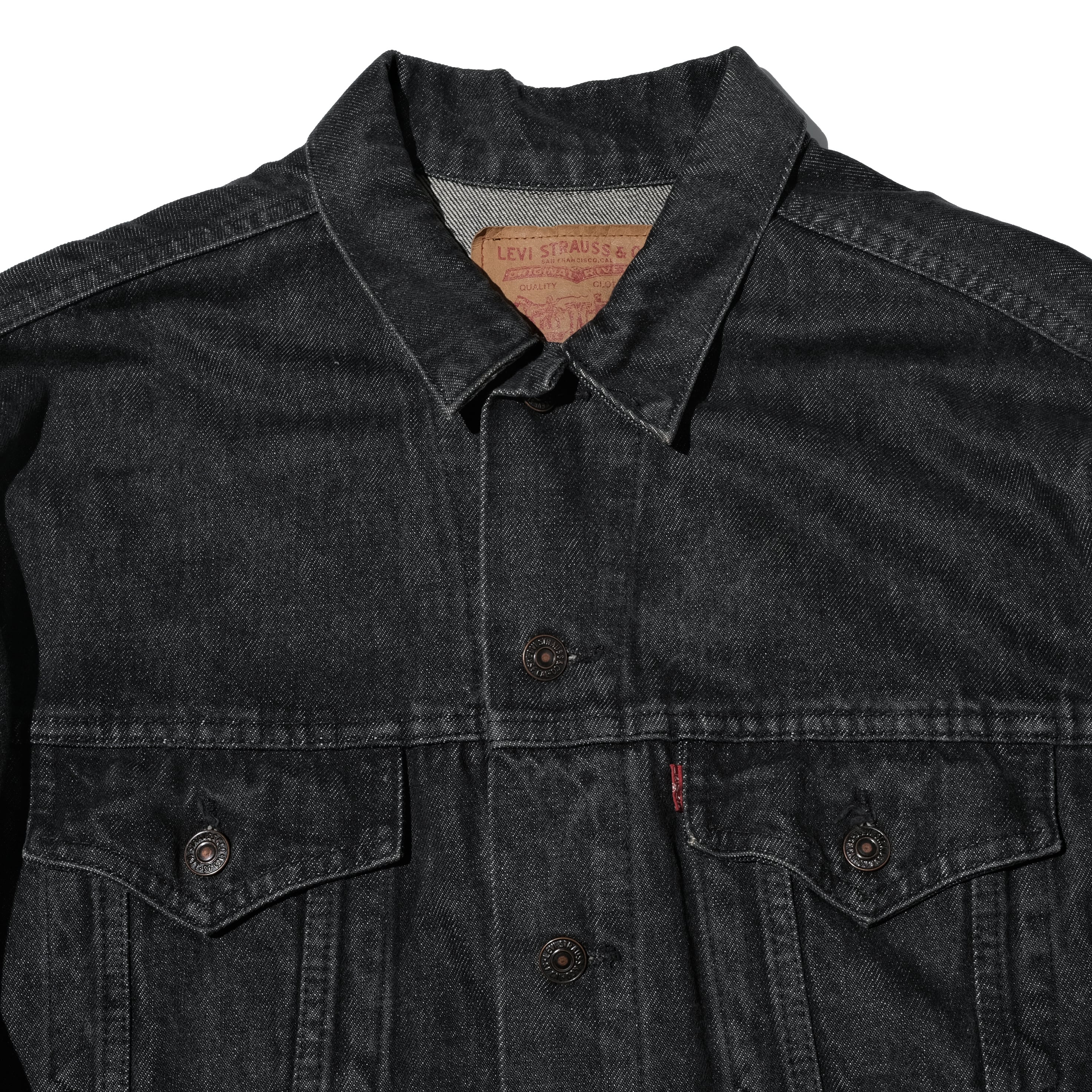 80's Levi's 75505 yarn dyed black denim jacket made in Canada[46]