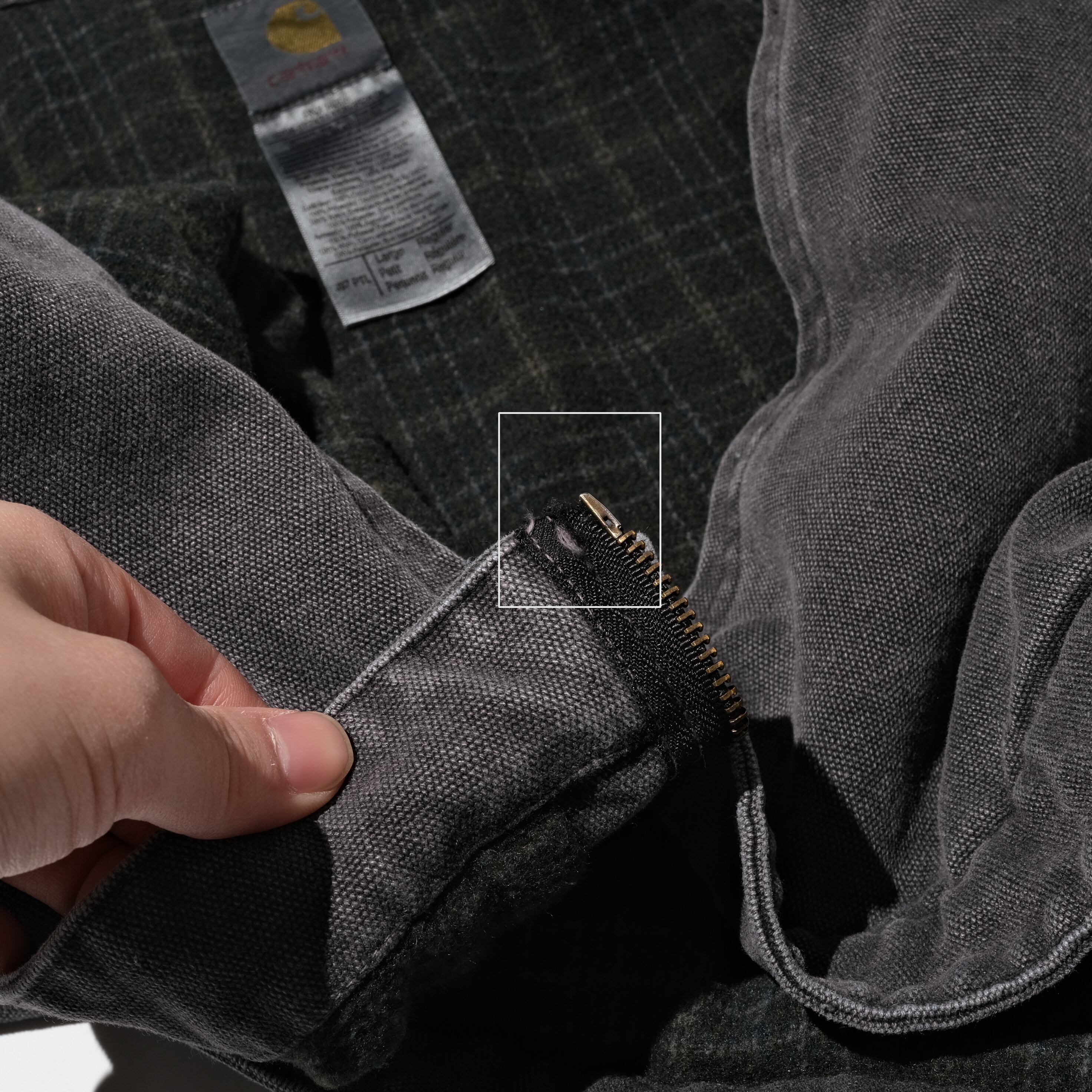 いわゆるグレーカラーで非常に合わせやすく、かつ経年変化の美しいアイテムと言えるかと思います。メキシコ製の年代のものになりますがもはやカーハートに関しては生産国はあまり関係ないですね。