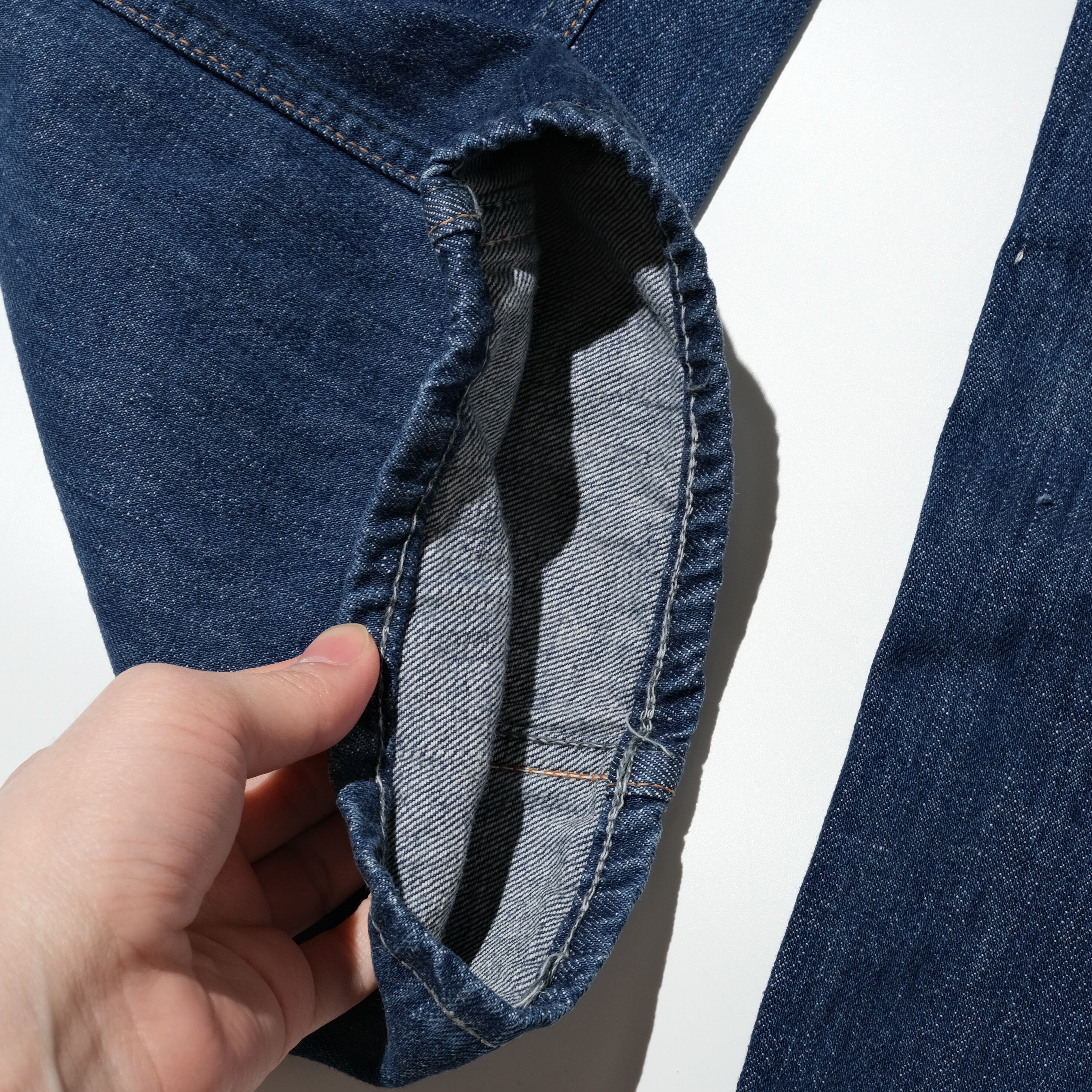 UFOリベット、ドーナツボタン、トップは刻印入りスナップボタンと古いディテールを備えた一本。別格の生地感です。