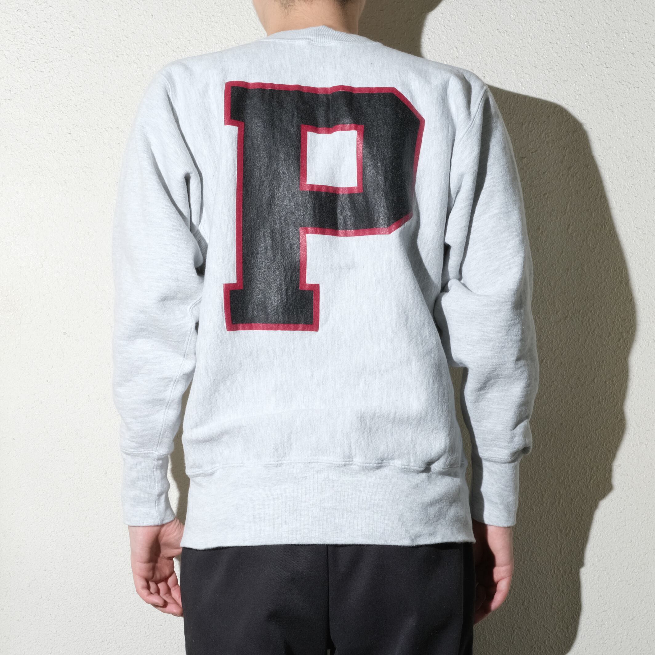 90's~のメキシコ製の個体。ポーツマス・アビースクールのカレッジプリントの入る個体。人気の頭文字Pが大きくバックにプリントされた非常にクールなデザインが魅力的です。