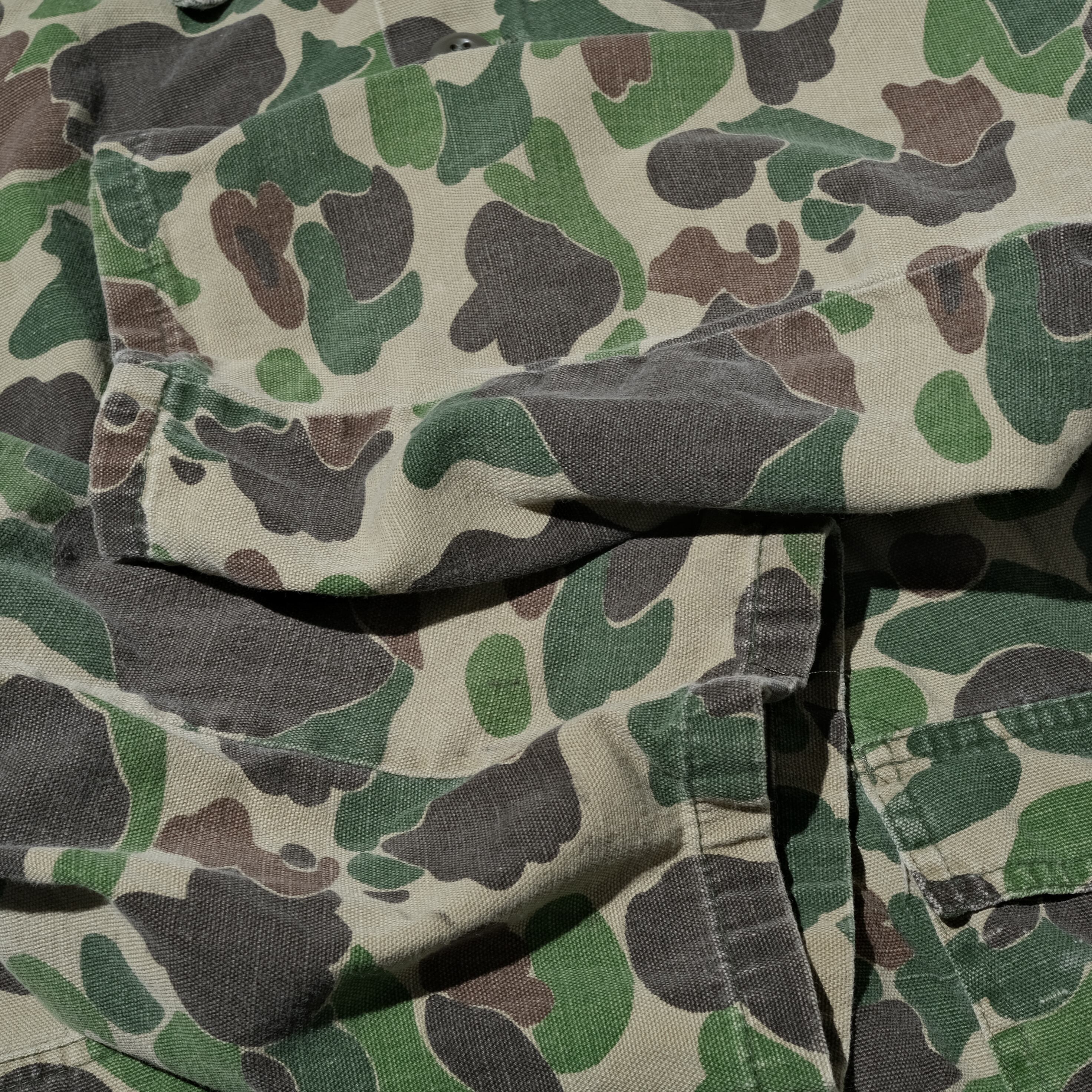 古めの年代のハンティングもので度々見かける、こちらのRANGERというブランド。コットン100%でフェードした素材感ですので、パキッとしたカモフラ柄が出る感じではなく、あくまでテキスタイル的に着こなせる印象。