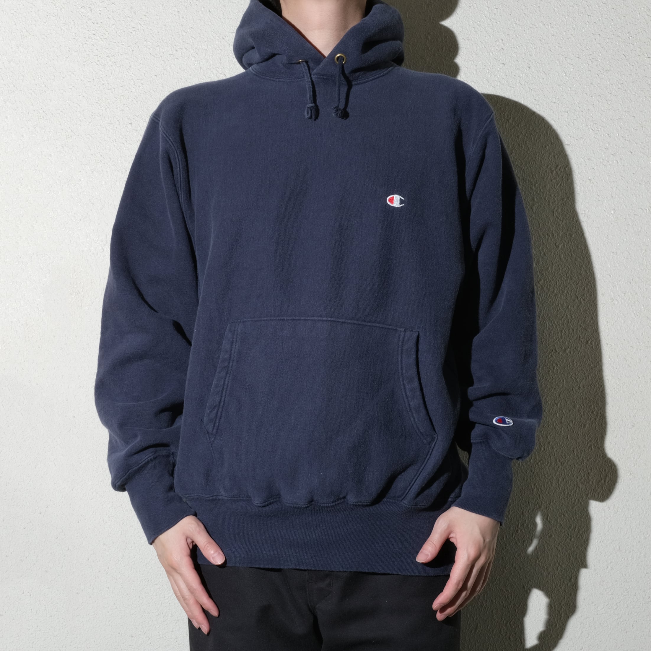 左胸にチャンピオンマークの入る定番の無地タイプ。そしてネイビーカラーでXL表記とリバースウィーブパーカーの中でも定番と言える個体。