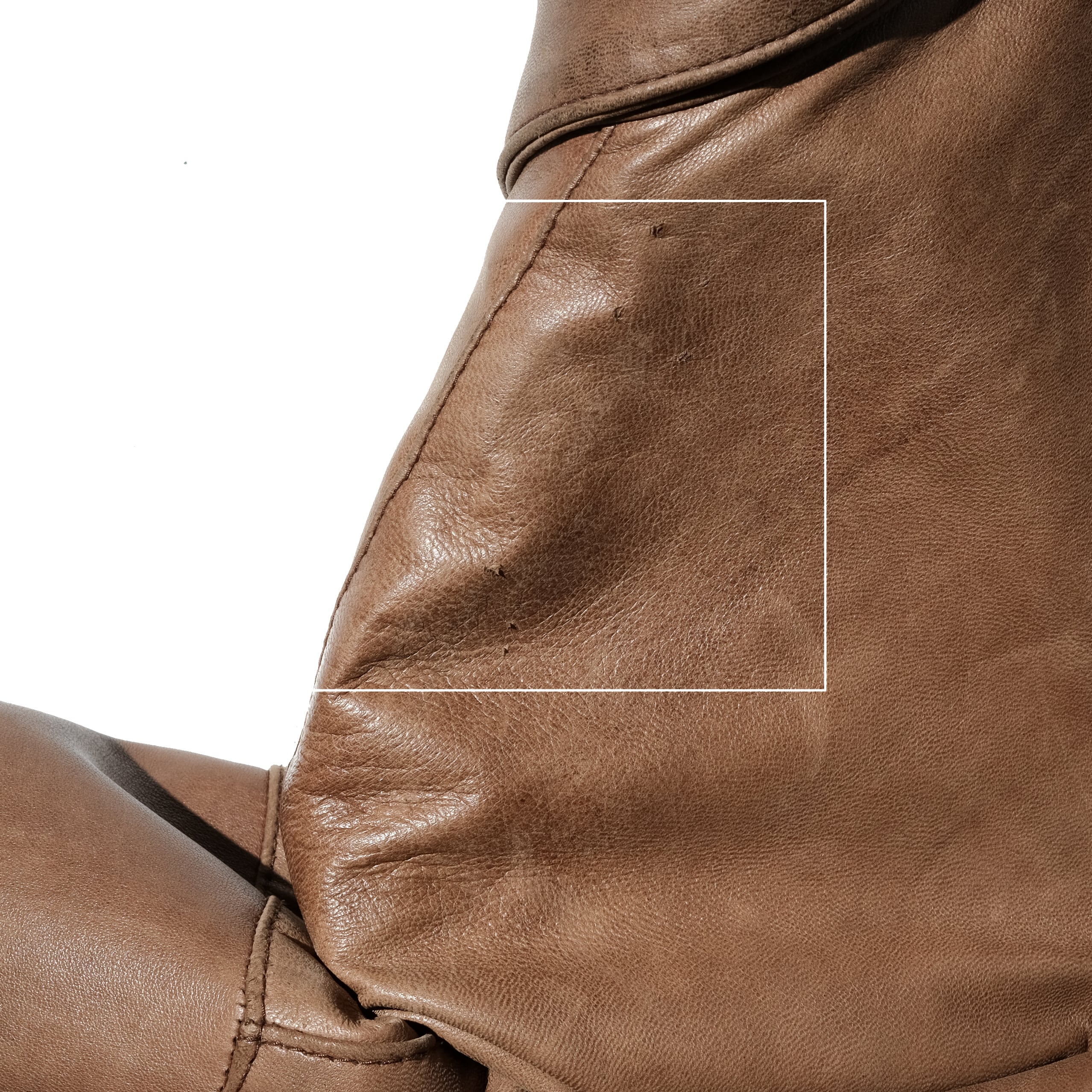 カラーはチョコブラウン、着込むごとに少しずつ色の濃くなっていく、エイジングが楽しい一枚かと思います。