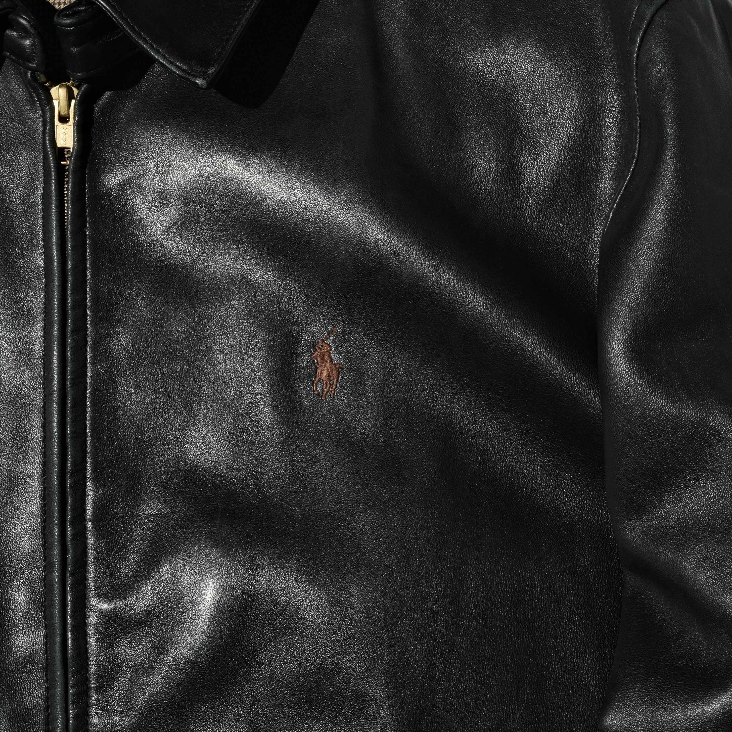 非常に人気の高いラルフのレザードリズラー。こちらは中でも特に人気のブラックカラーかつ袖/裾に絞りのゴムが入ったいわゆるコーチジャケットタイプのもの。