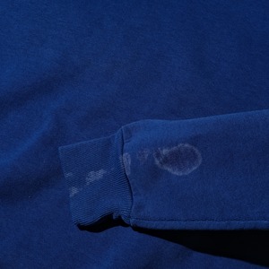 90'sのUSA製の一枚。定番のブルーカラーの個体で表記サイズはL、需要の多いところかと思います。