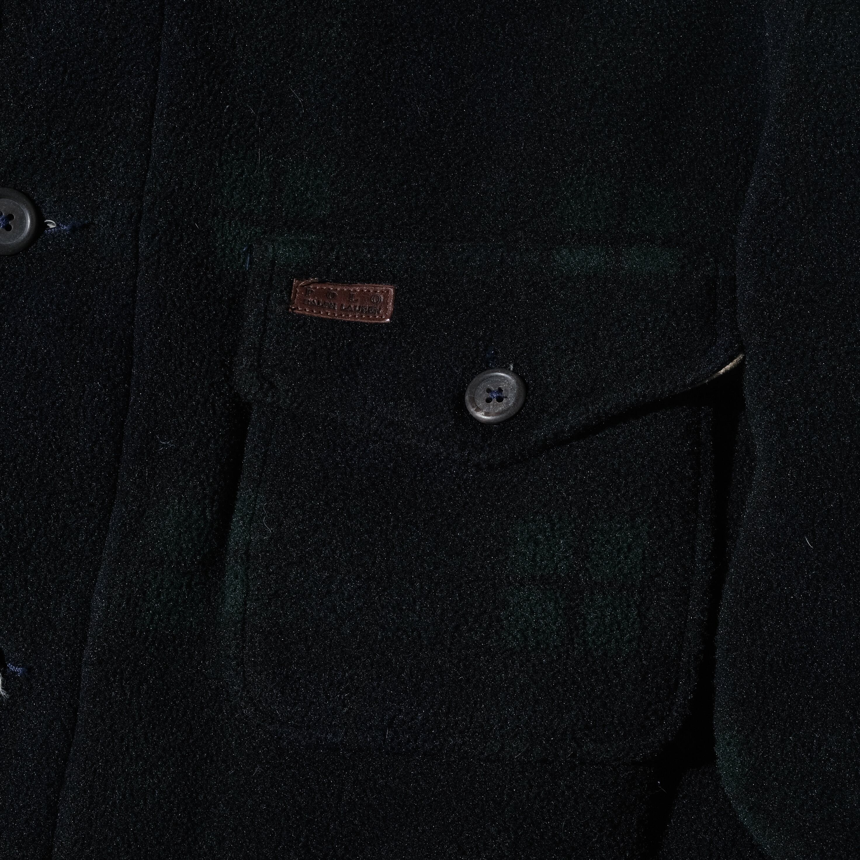 裏地にはチノクロスが使用されたブラックウォッチ柄のフリースジャケット。