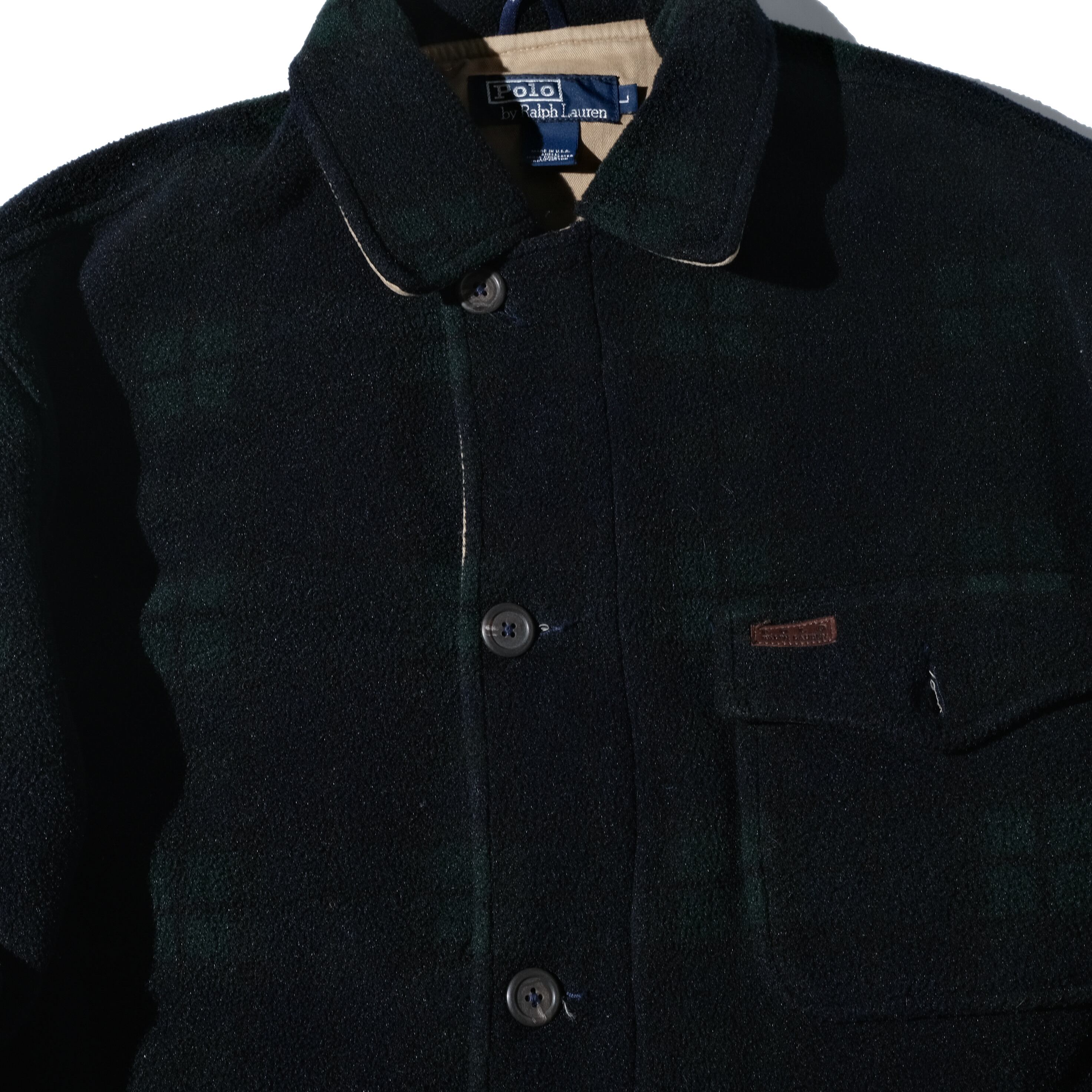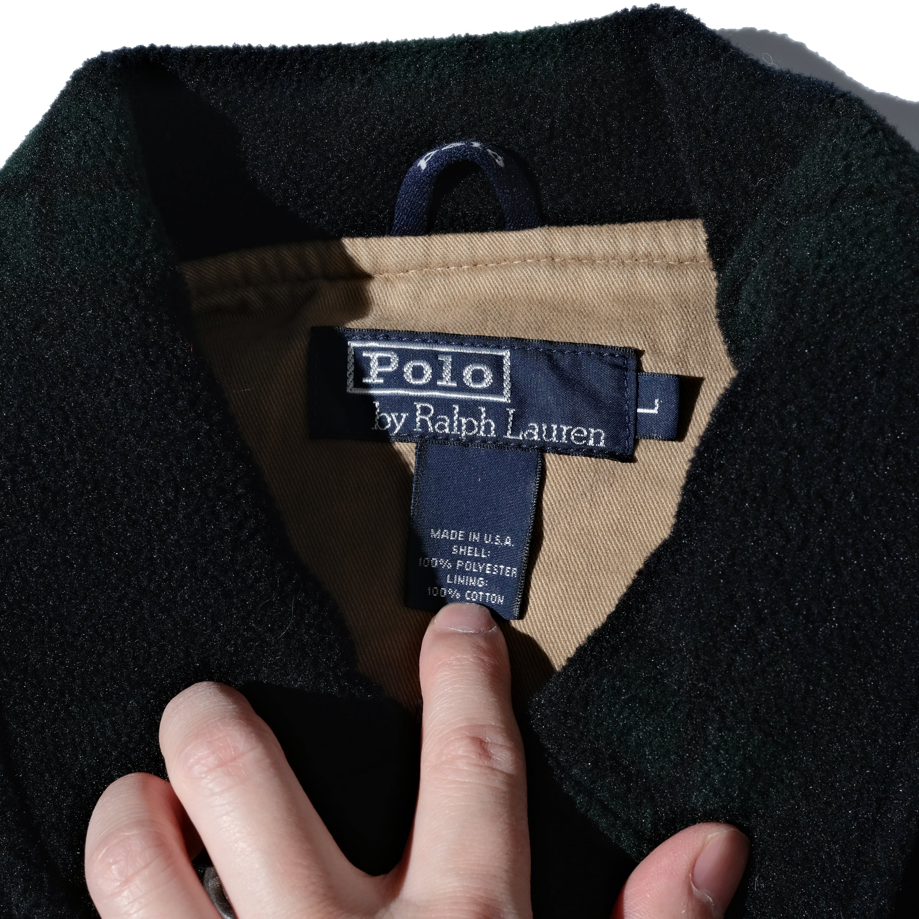80's Polo by Ralph Lauren A-2 type black watch fleece jacket made in USA[L]