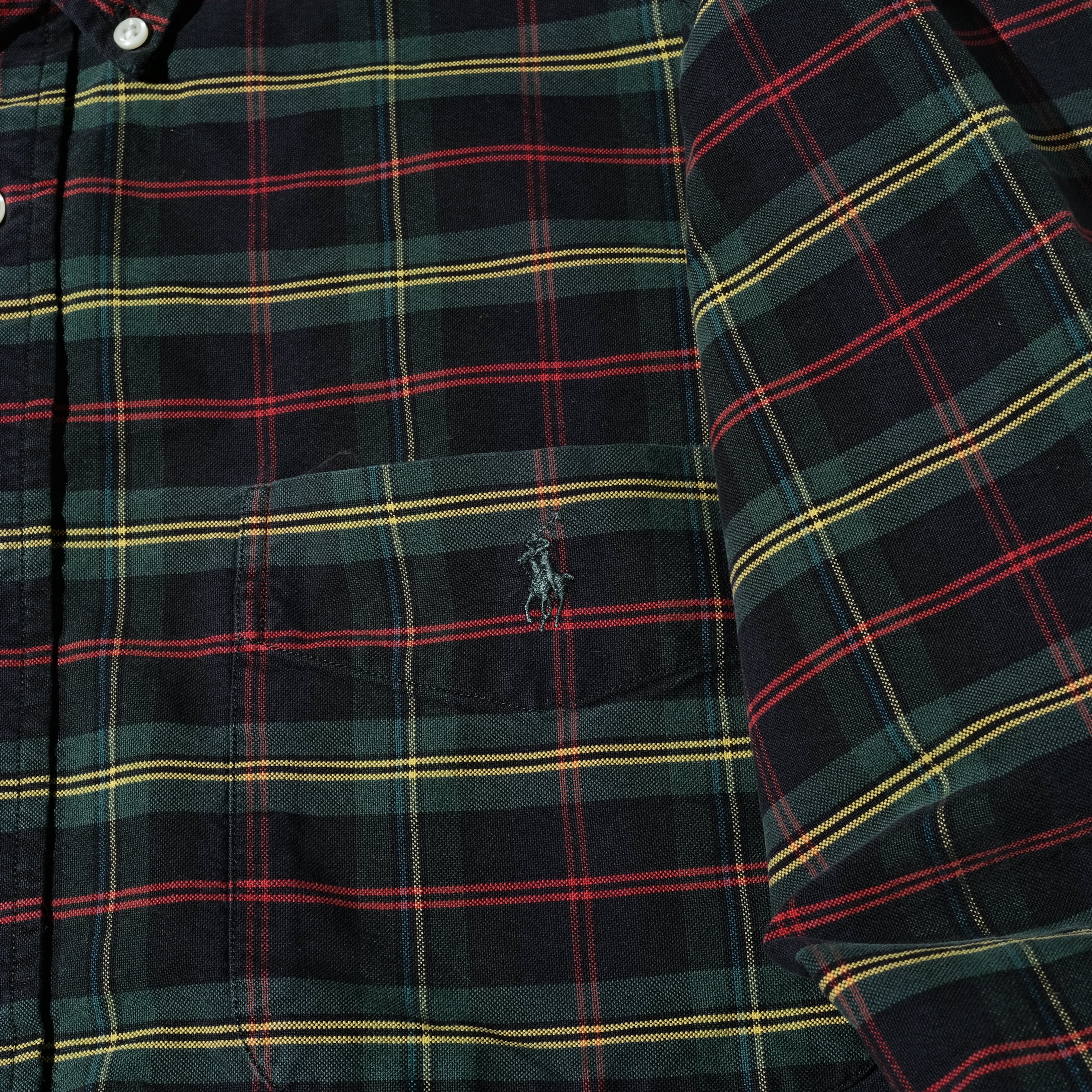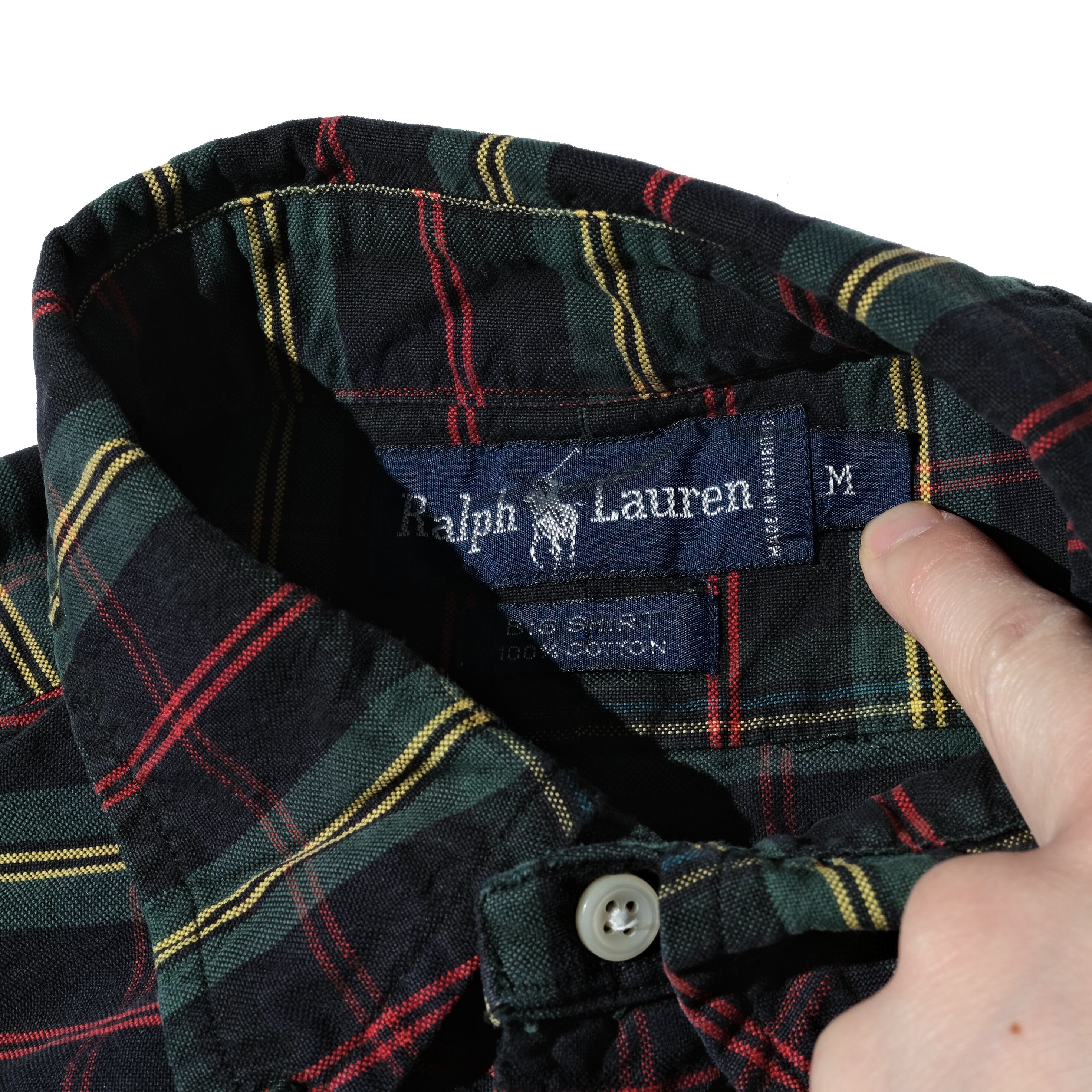 少し古めの90'sごろのタグのつくモーリシャス製のもの。ラルフらしい上品なチェック柄、この柄はもっと前のTHE BIG SHIRT表記のものでも見かけますので定番と言えるかと思います。