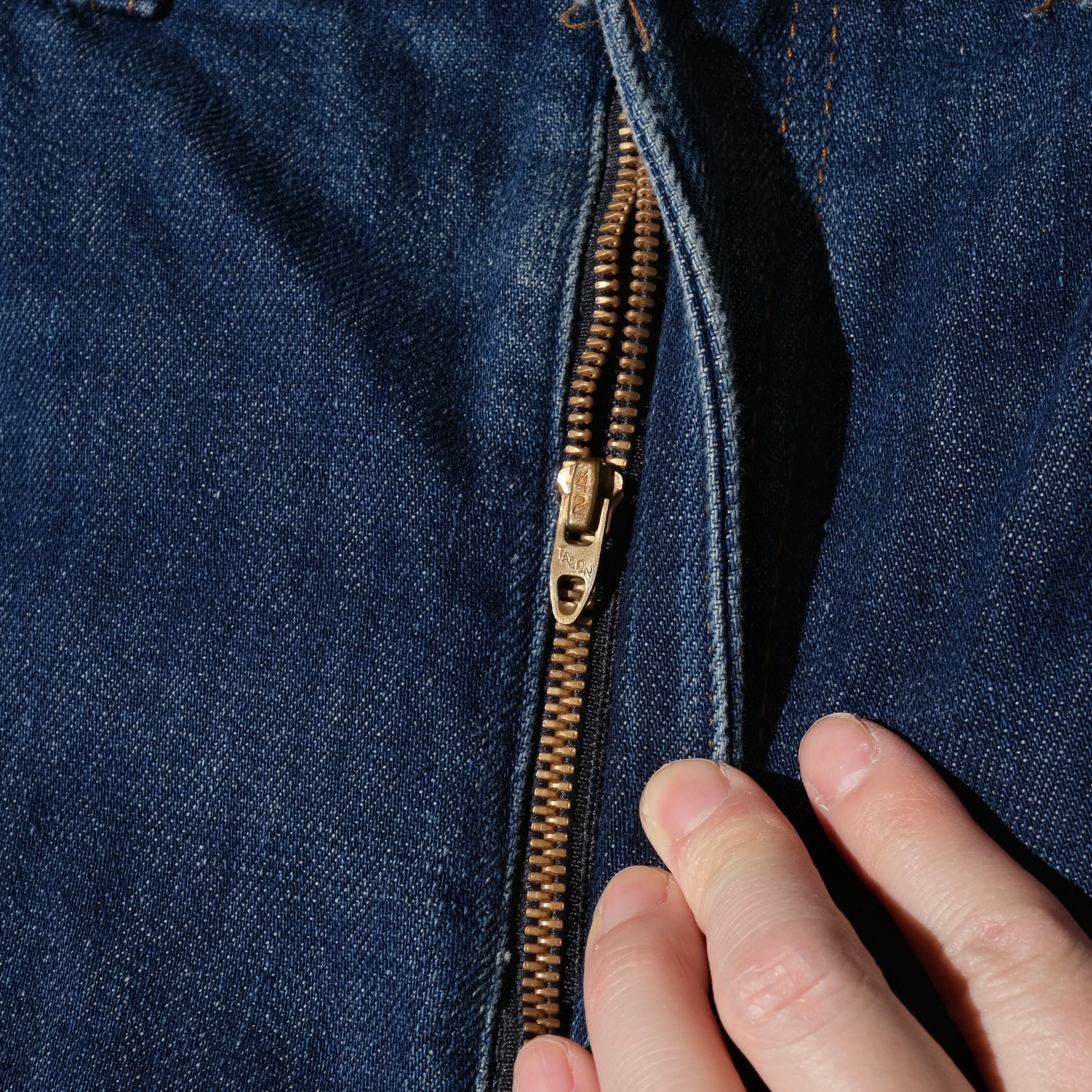 生地的にも明らかに古い質感のものが使用されており、フロントもロケット型の42タロンジップと素晴らしい仕様です。