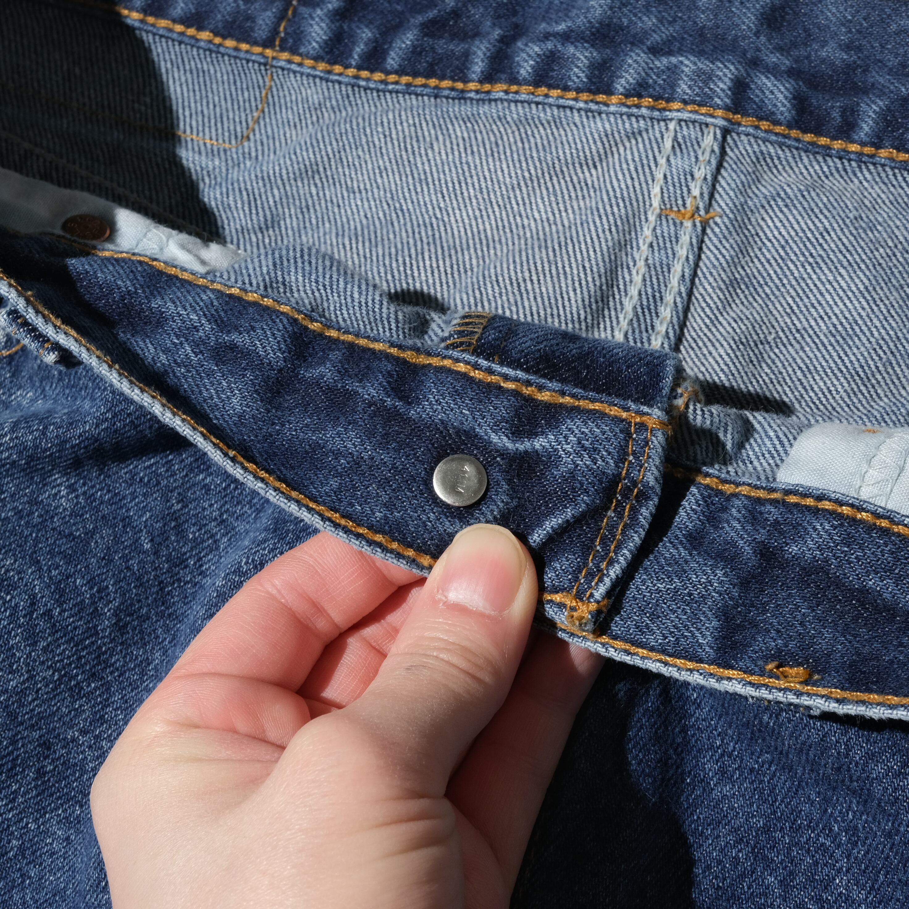 90's~のメキシコ製の個体。まだしっかりと残ったインディゴに、かつ濃淡のはっきりとついた色落ちが特徴的です。