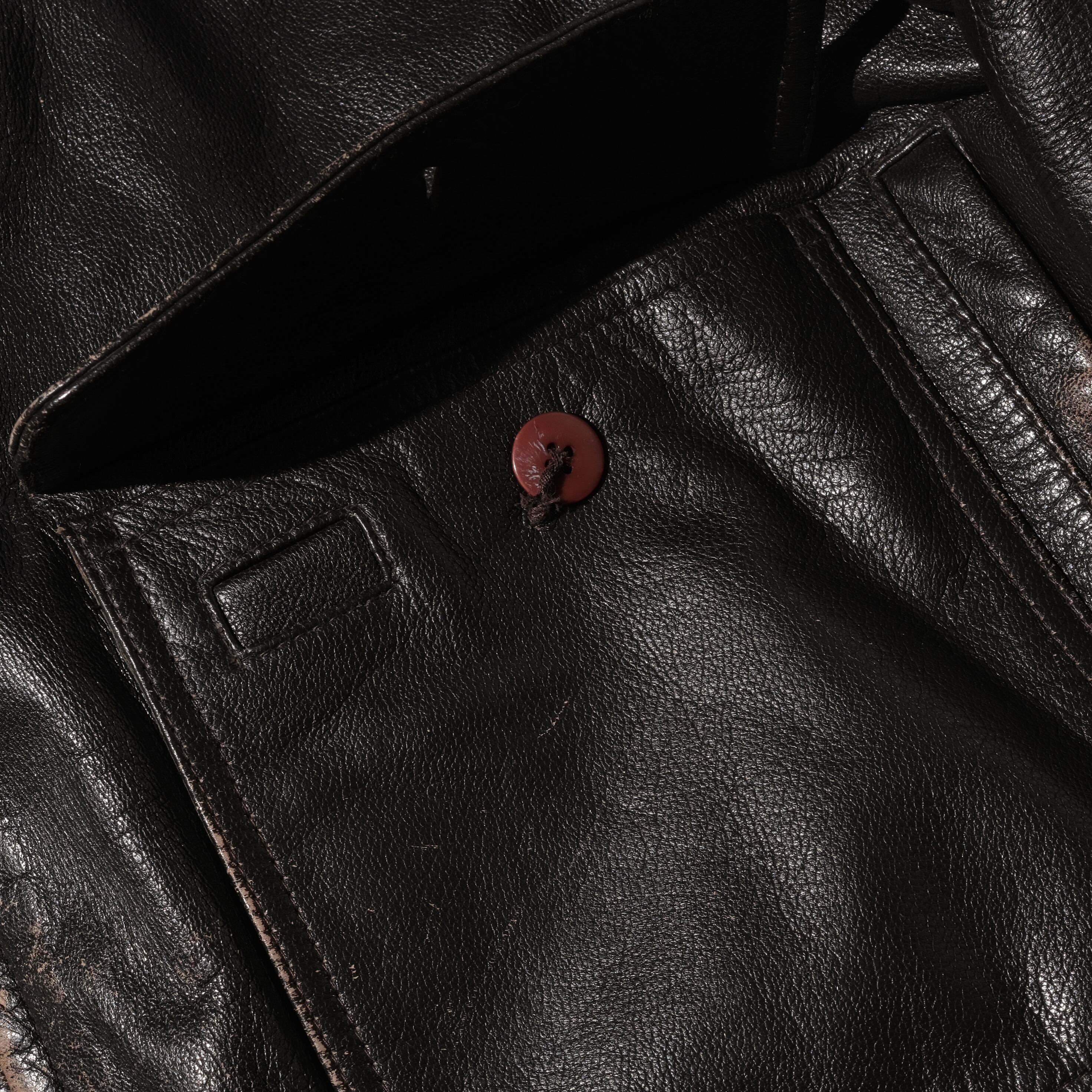 【状態】全体的にレザーアイテム特有の着用感、スレ、フェード。ムートンに抜け。左ポケットのボタンにほつれ。着用に支障のある目立つダメージやヨゴレなど見当たりません。