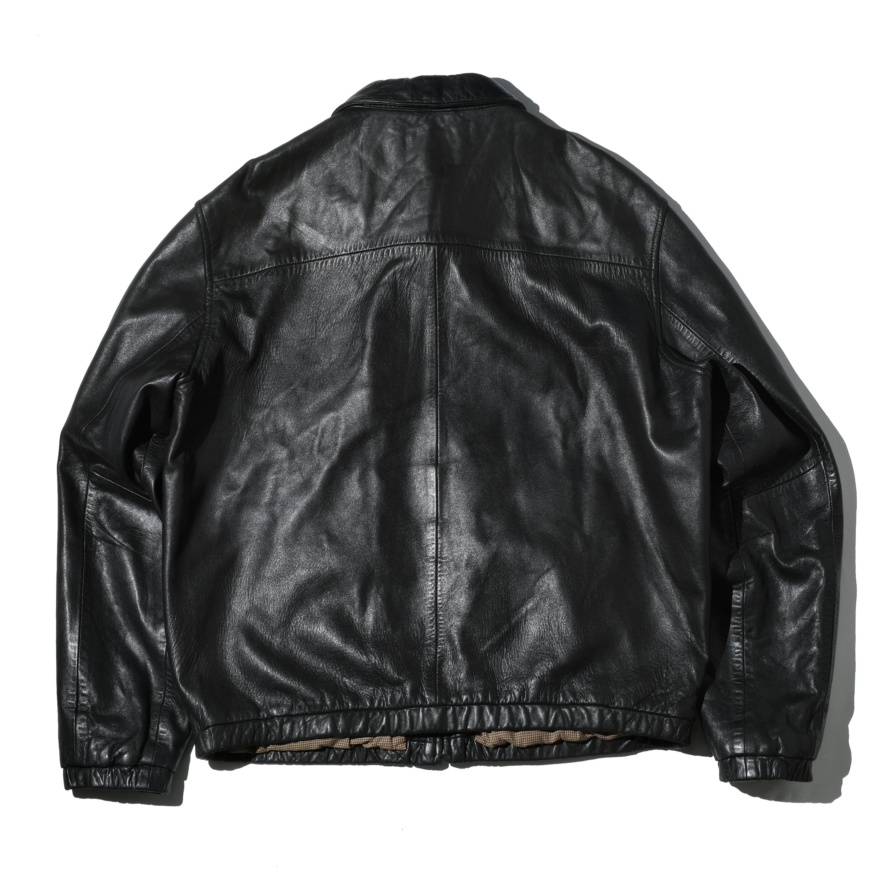 【状態】全体的にレザー特有の着用感、スレ。フロントに微かなキズ。左ポケット付近に2箇所、キズがあり、前所有者が接着を試みた形跡が見られます。その箇所以外はこのタイプによく見られるゴム部分のアタリなども少なく、比較的良い状態かと思われます。そのほか大きく目立つダメージやヨゴレなど見当たりません。