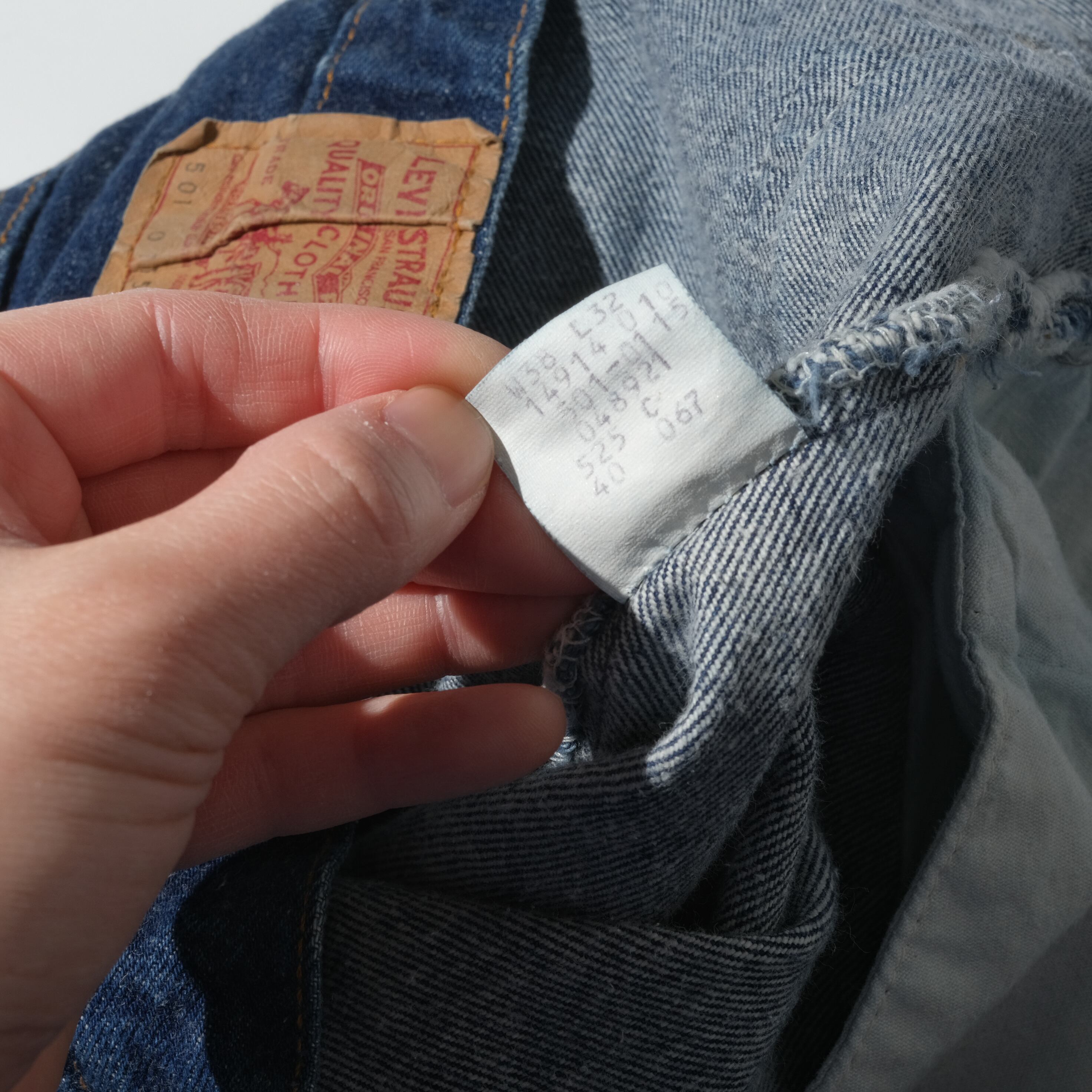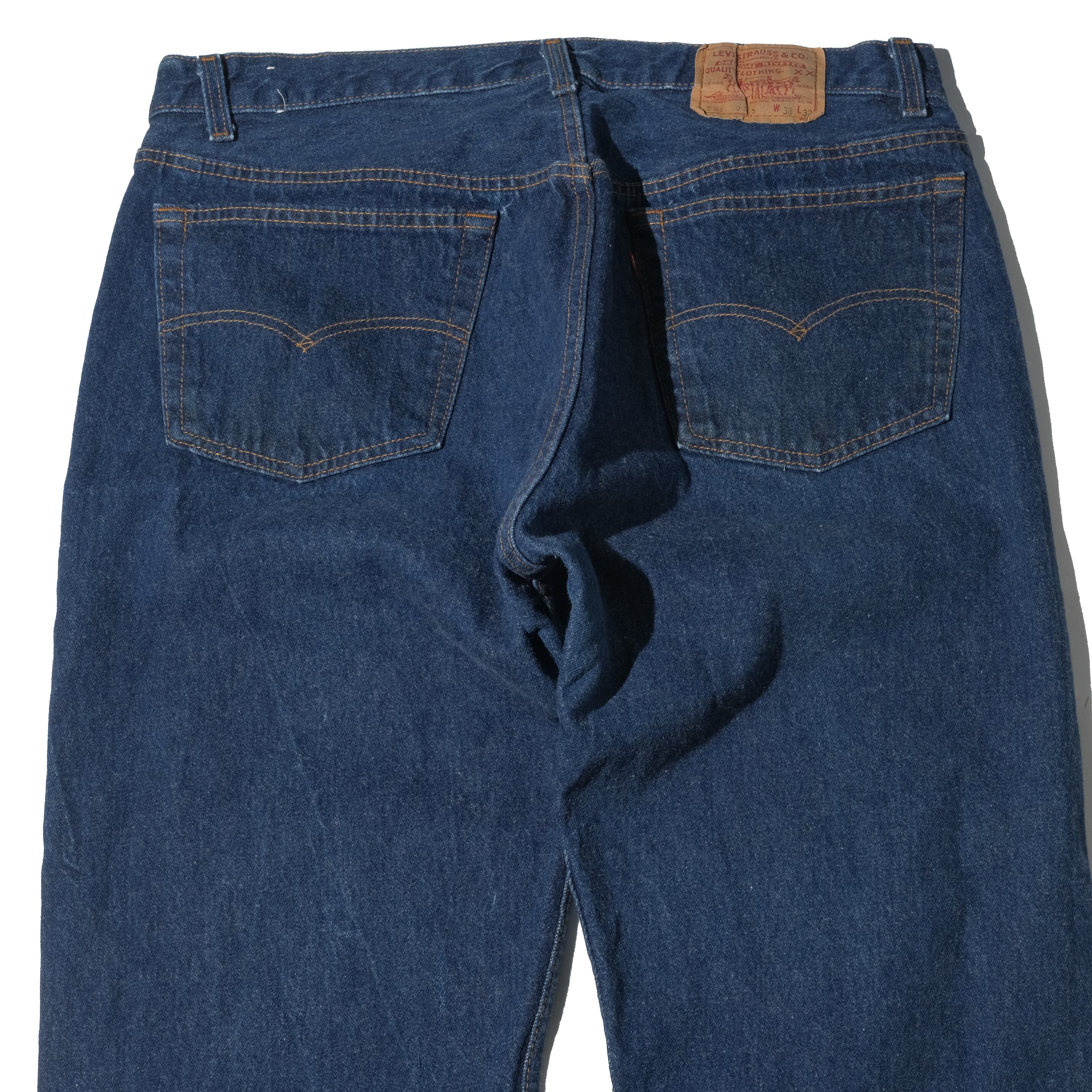 かなり珍しくなってきた87年、USA製の個体。まだ見かけることのできる90's後半の501とはインディゴの色味が違っており、どちらかというと赤耳などに近い青さの強くでたカラーです。