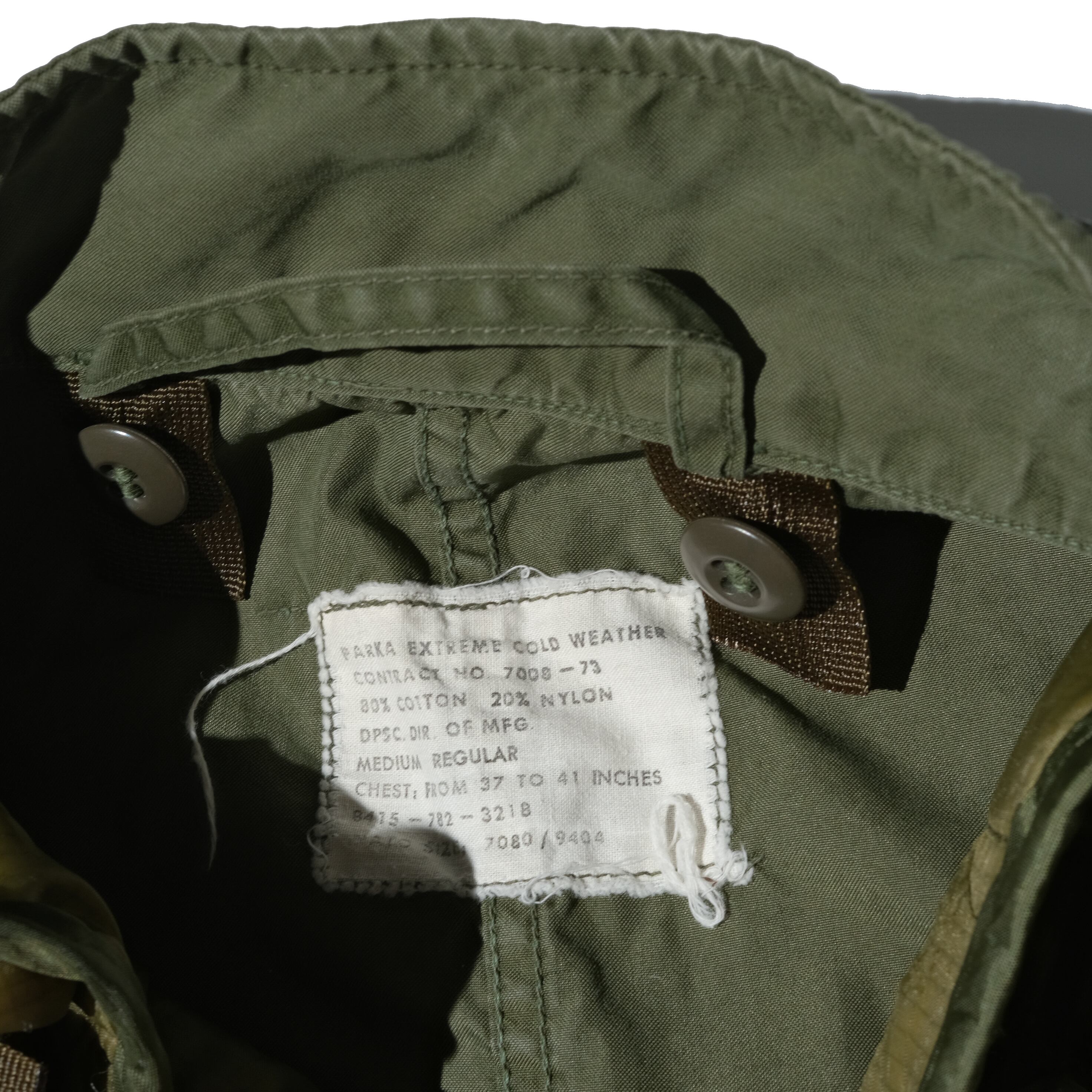 こちらの個体は比較的初期の73年ごろのもの。どちらもかっこいいですが、これより後の年代より濃いめのオリーブのカラーやジャリッとした手触りでこちらが好きという方もいらっしゃいますね。ぜひ一枚持っておいていただきたいアイテムです。