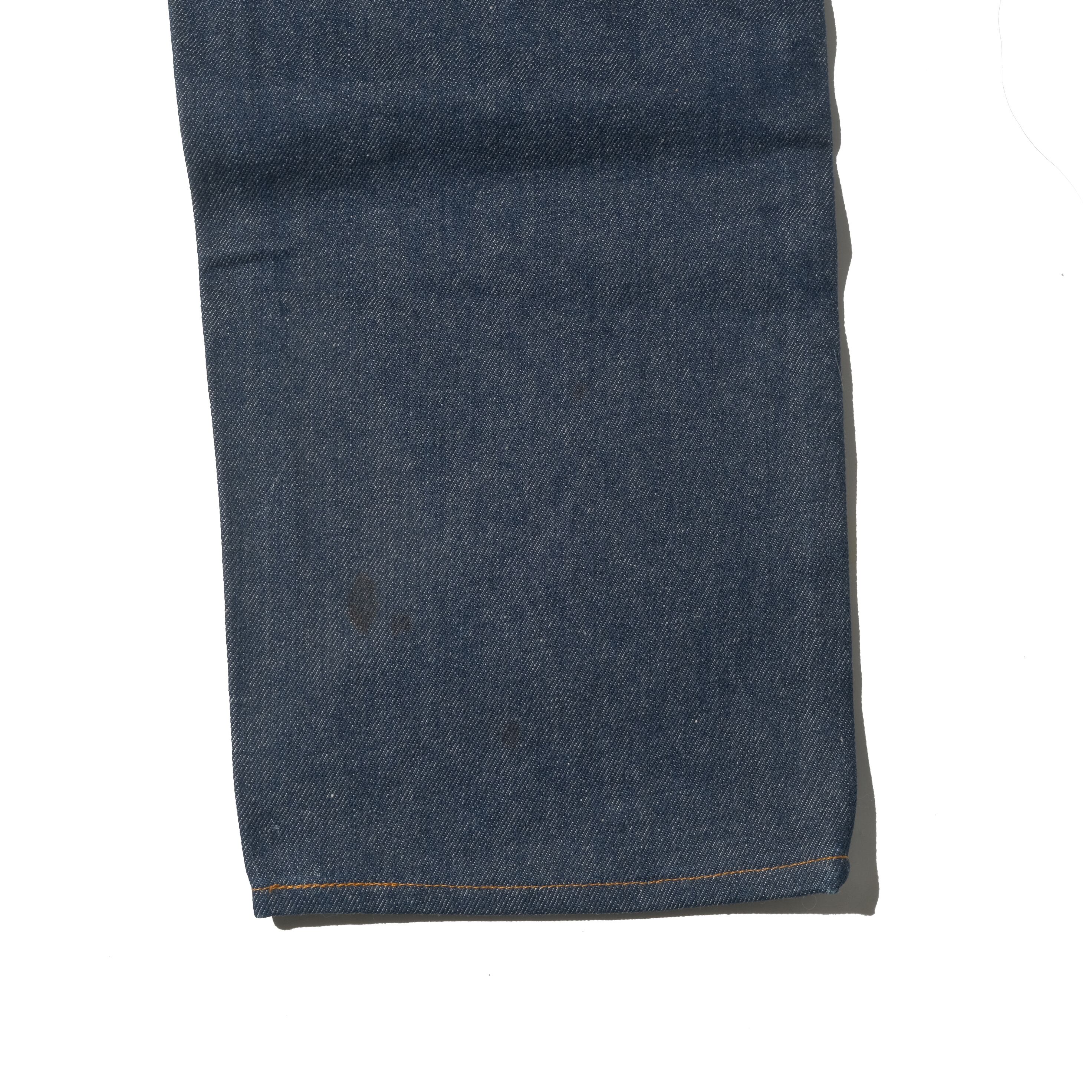 【状態】デッドストック商品となります。ボタン、リベットにさび。フラッシャーヤブレ。右足裾部付近に錆よごれ。そのほか保管、経年によるタタミジワ、フラッシャーのホチキス跡などございますが着用感のない素晴らしい状態です。