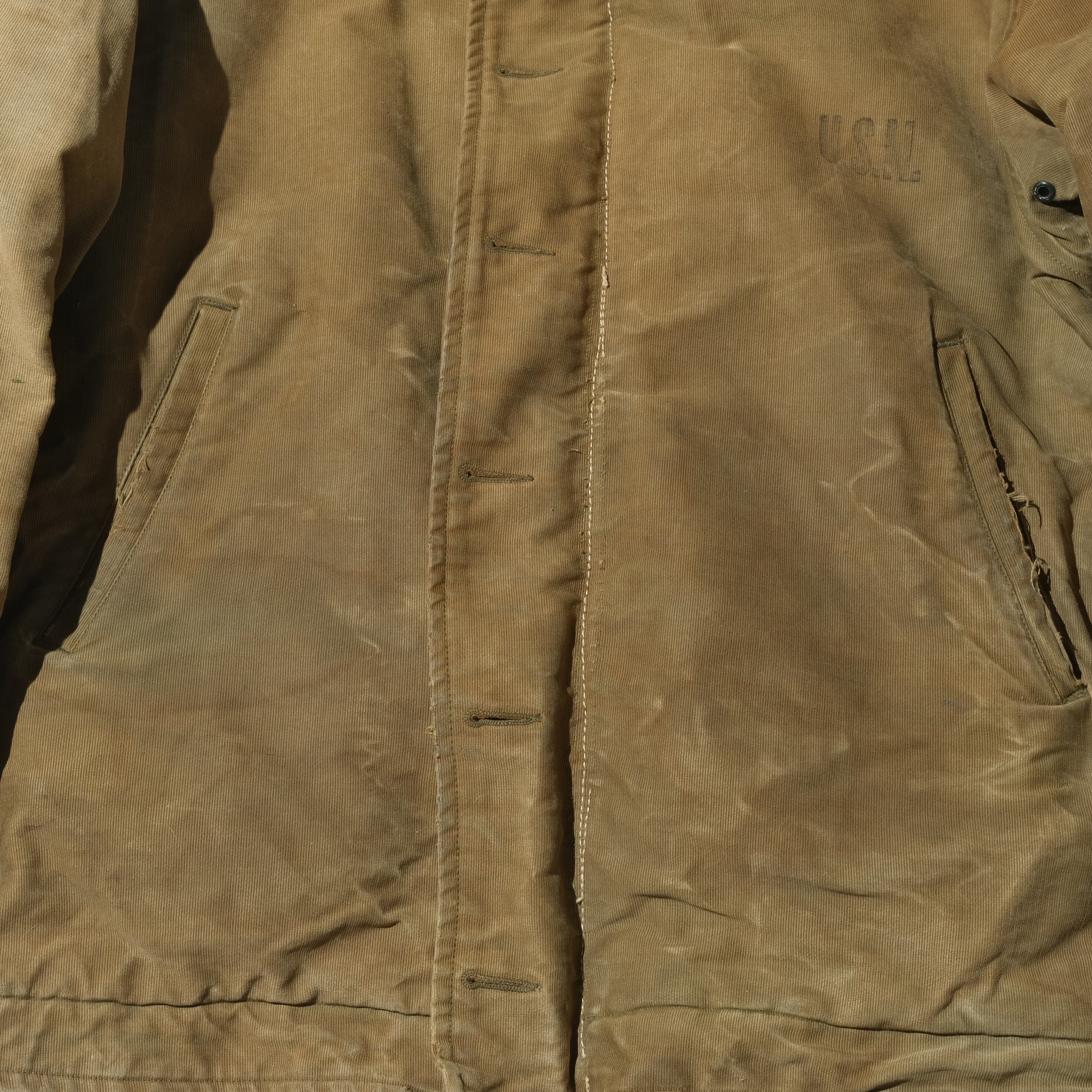 アルパカファーのライニングが配された防寒性抜群のビンテージ。年代など考慮しますと仕方のない部分もありますが、ダメージやボタンの欠損がありますのでそれら込みのプライスに設定いたしました。