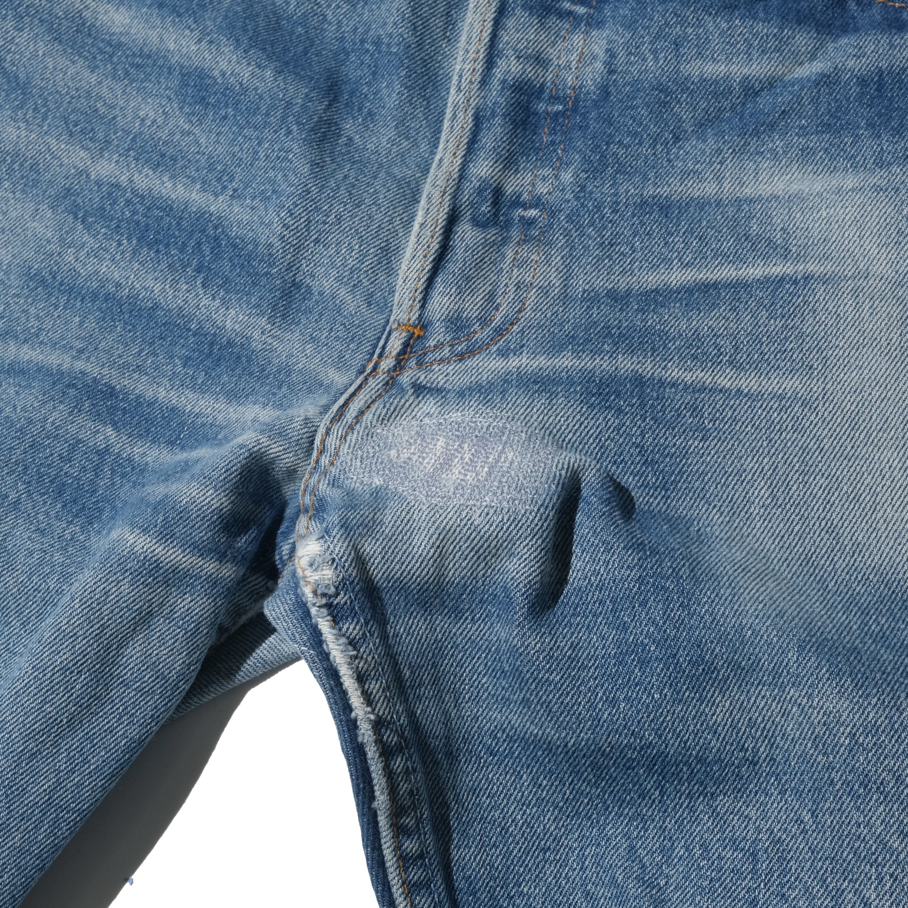99年のUSA製のもの。品番的にリジッドの状態から穿きこまれてこの色落ちになった個体です。