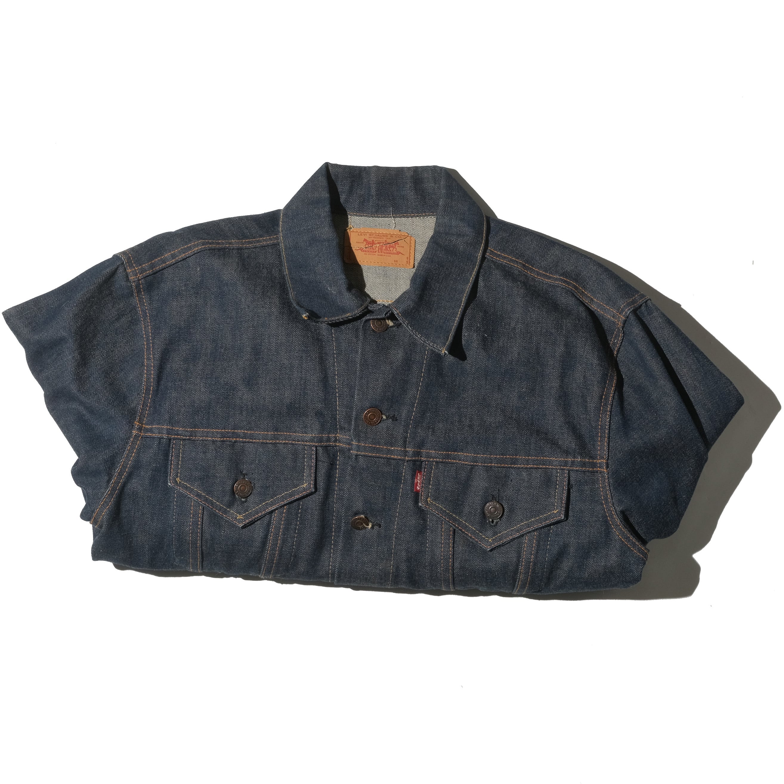リーバイスのデニムジャケットはサイズが大きくなるにつれて着丈はほぼ変わらず身幅の広くなっていく仕様、今のファッションで着用するのであれば、こういった大きいサイズがやはり一番かっこいいです。