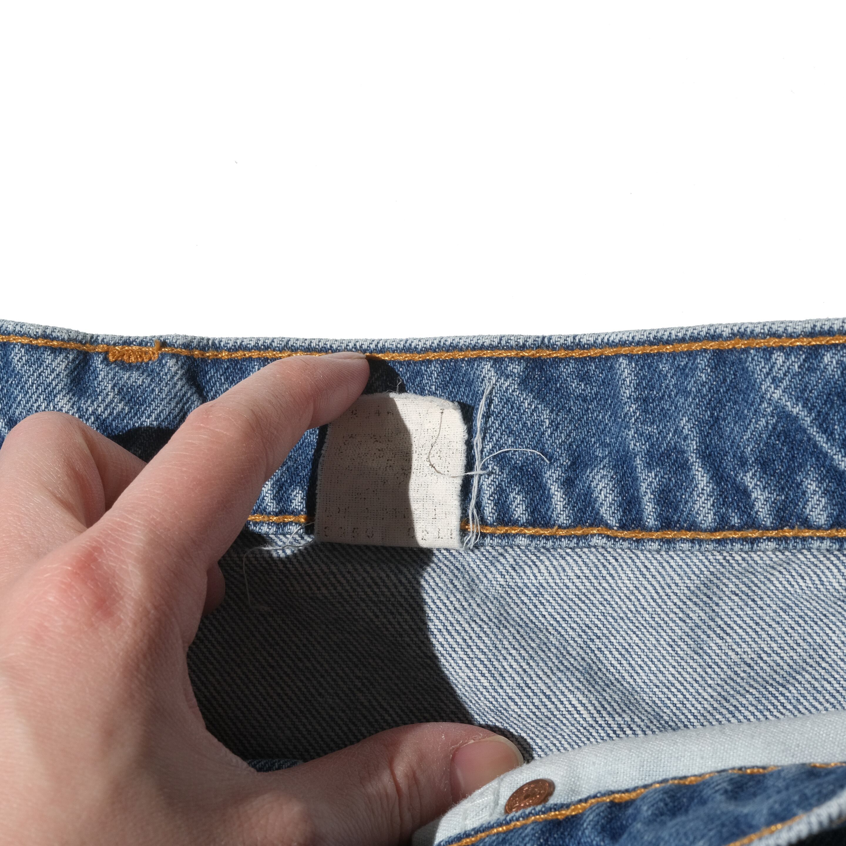 ただトップボタン裏からUSA製の個体ではあるとわかる個体。34×30表記のサイズ、シュリンクもほぼなくゴールデンど真ん中のサイズバランスが良いですね。